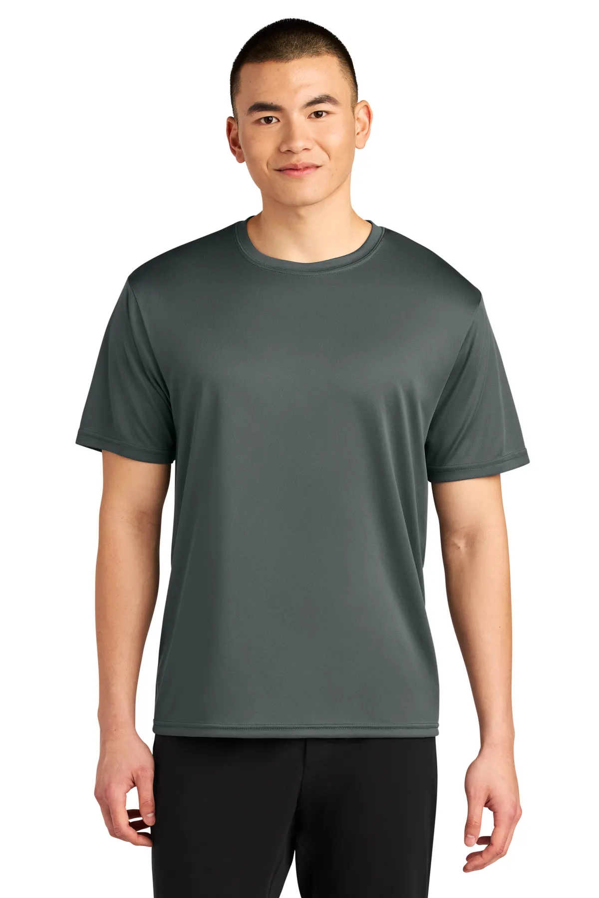 Built for high-intensity workouts and athletic performance, this sprint performance tee delivers a lightweight, breathable fit that keeps athletes comfortable during demanding training sessions. The 100% recycled polyester fabric efficiently wicks moisture, helping to keep the body cool and dry while maintaining a soft, flexible feel.