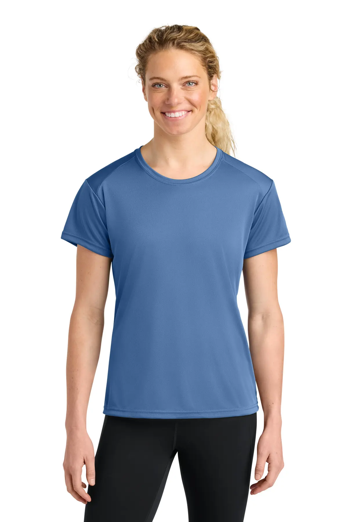 Crafted for active women, this short sleeve tee delivers breathable comfort and reliable performance during workouts, training, or outdoor activities. The 4-ounce recycled polyester interlock fabric wicks moisture efficiently while keeping you cool and dry during high-energy movement.