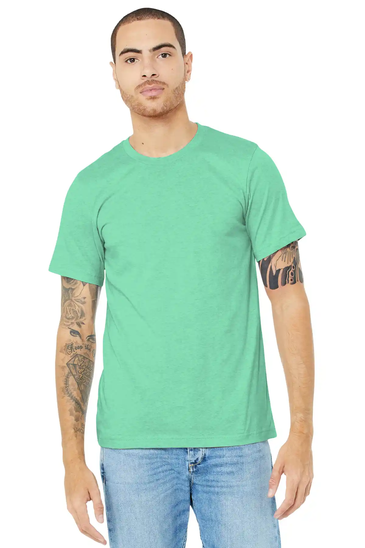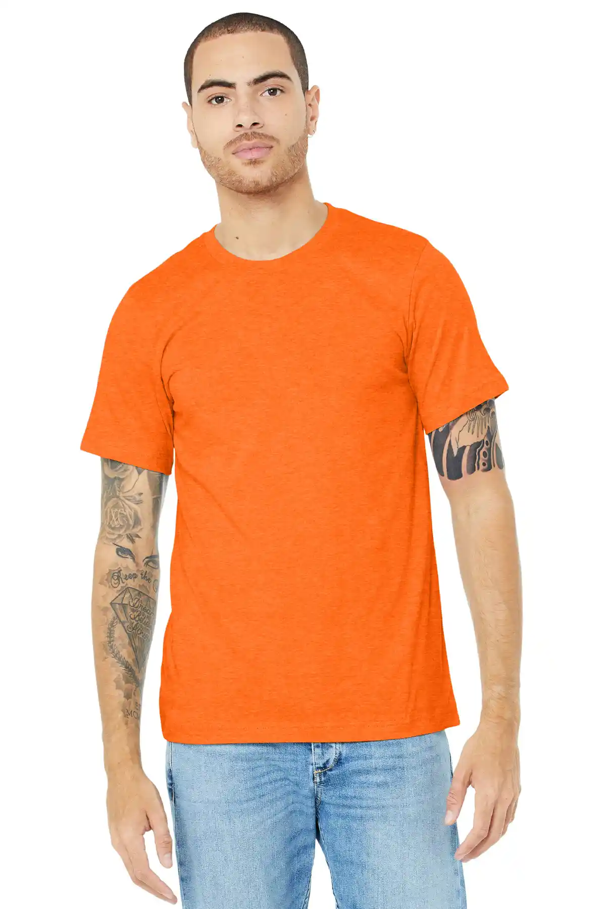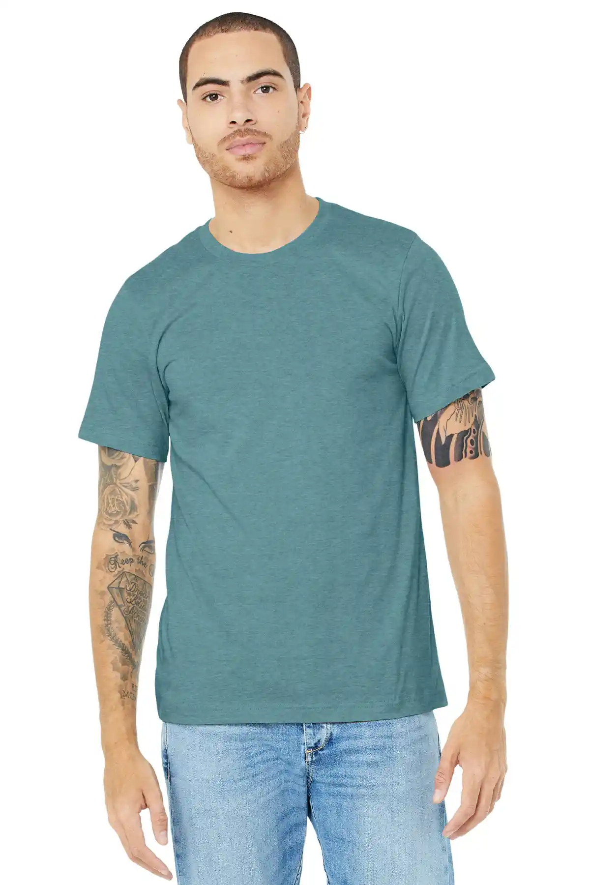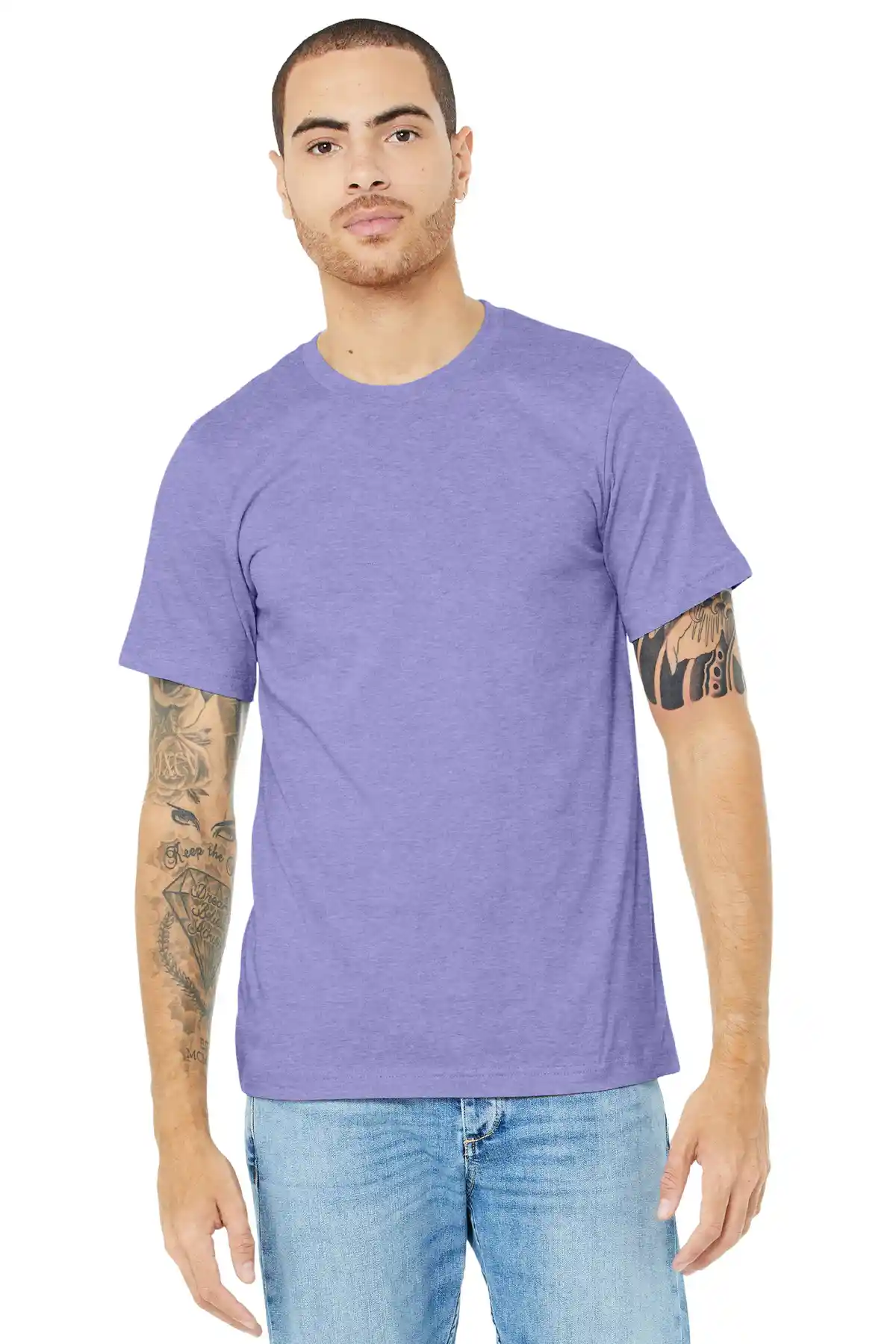 This soft, durable tee is designed for everyday comfort with a modern unisex fit that works for all occasions. Crafted from high-quality Airlume combed and ring-spun cotton blended with polyester, it offers a smooth, lightweight feel that holds up wash after wash. The side-seamed construction and shoulder taping ensure a clean, structured silhouette, while the tear-away label adds comfort and customization options. Available in a range of heather, prism, and solid CVC blends, this tee pairs effortlessly with jeans, shorts, or layered under jackets for a versatile wardrobe staple.