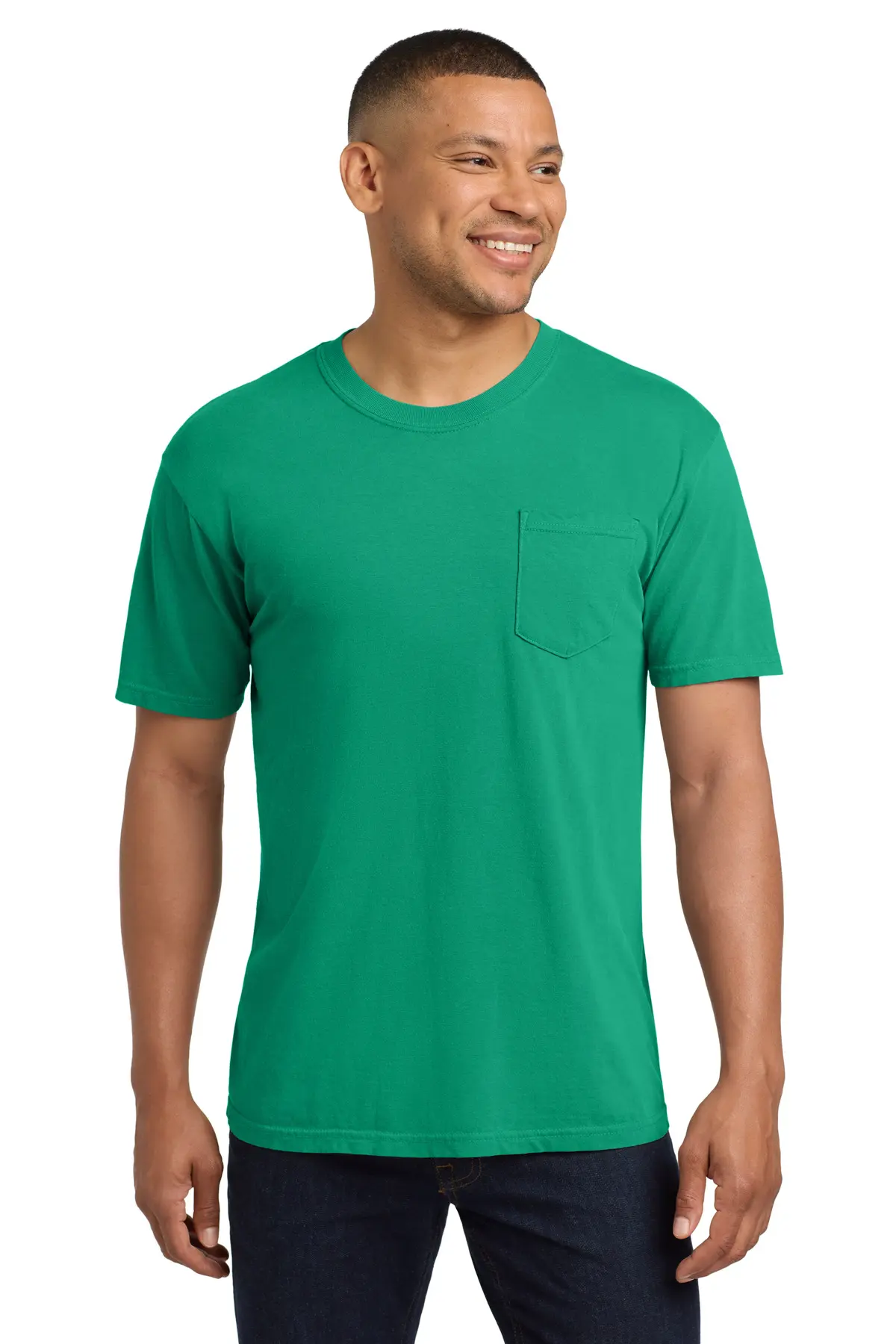 This heavyweight pocket tee delivers comfort and utility in one garment. Garment-dyed for a soft, lived-in feel, it features a left chest pocket and a relaxed, seamless body construction. Durable stitching and classic rib collar add lasting style.