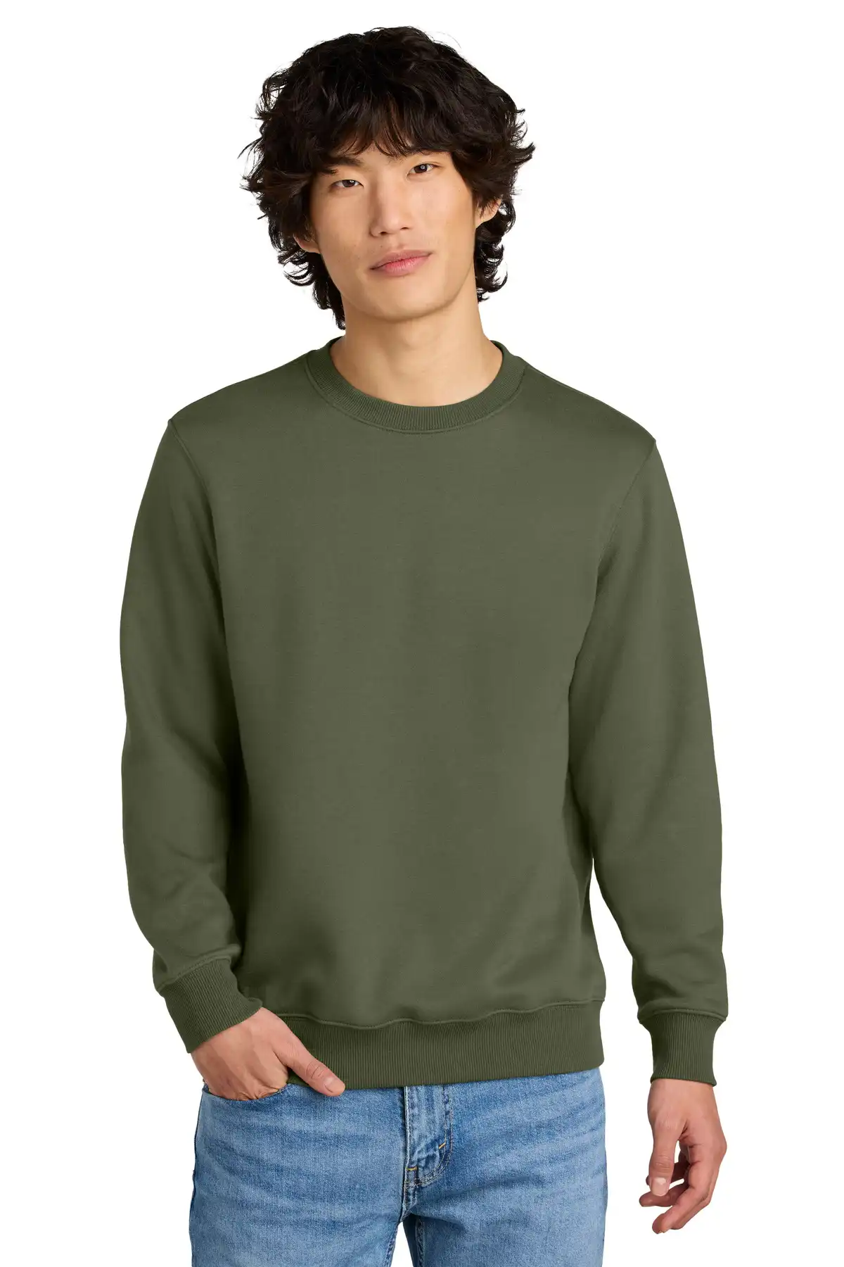 Step into elevated comfort with this in-demand fleece crew. Crafted from 9-ounce 80/20 cotton-polyester 3-end fleece, it features brushed softness and a slightly oversized shoulder for contemporary styling. Side-seamed construction enhances fit, while the 2x1 rib-knit trim at the neckline, cuffs, and hem ensures premium structure. A 100% combed cotton face provides a polished surface for effortless layering. Ideal for casual chic or weekend lounging, this crew exudes understated luxury. Available in versatile colors, it pairs seamlessly with other Perfect Weight pieces for a complete, elevated look.