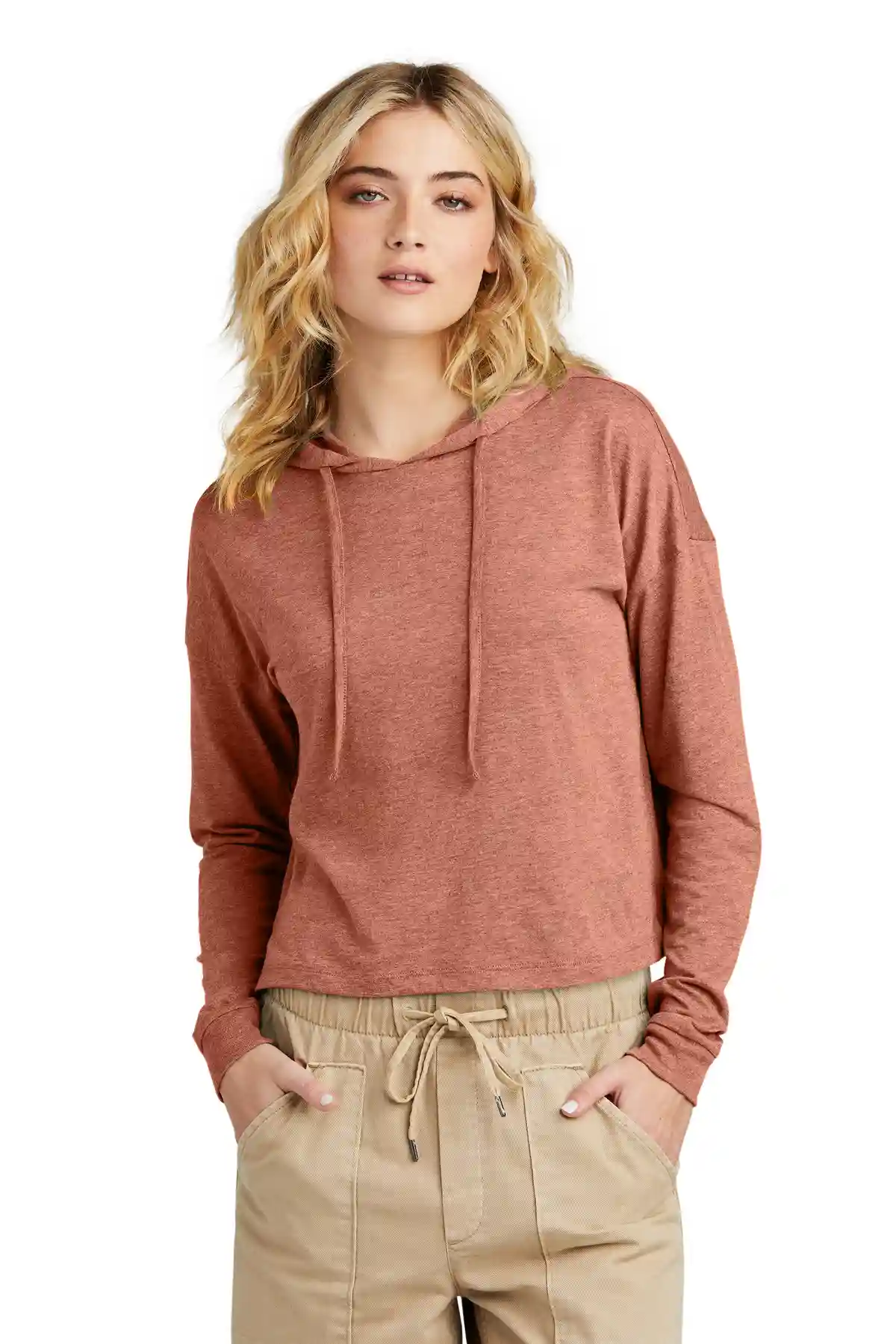 This mid-length hoodie combines casual streetwear with premium tri-blend comfort. Made from 4.5-ounce 50/25/25 polyester/combed cotton/rayon, it offers a relaxed, lightweight feel. Modest crop with unlined hood and self-fabric drawcords balances style and movement. 1x1 rib-knit cuffs, drop shoulder design, shoulder-to-shoulder taping, and finished hem with side vents ensure a flattering fit. Tear-away label maximizes comfort. Perfect for layering or as a standalone piece, this hoodie delivers premium softness, contemporary style, and elevated casual flair.