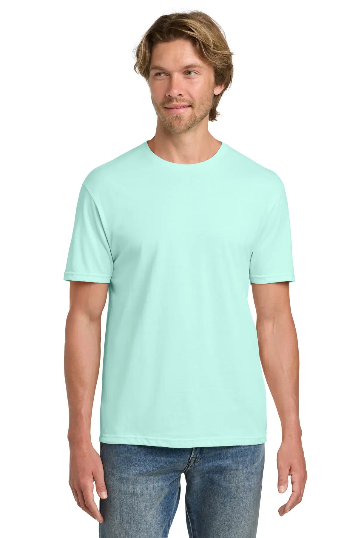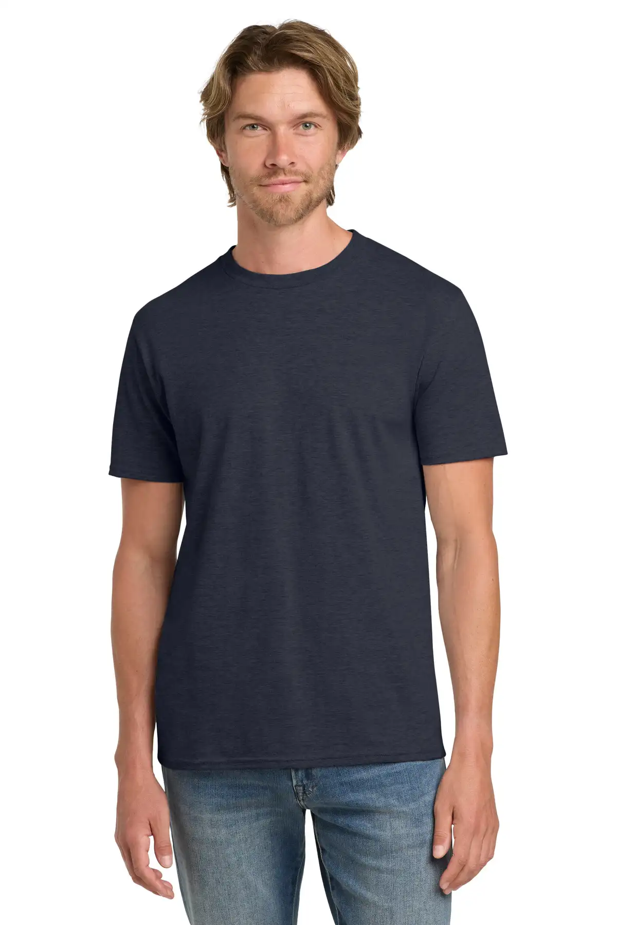Engineered with high stitch density fabric, this 4.5-ounce tee provides a smooth printing surface using EZ Print enzyme technology. Blends 100% ring-spun cotton with 65/35 poly blends in heathers for comfort. Features shoulder-to-shoulder taping, seamed collar, double-needle sleeves and hem, and modern side-seamed fit.