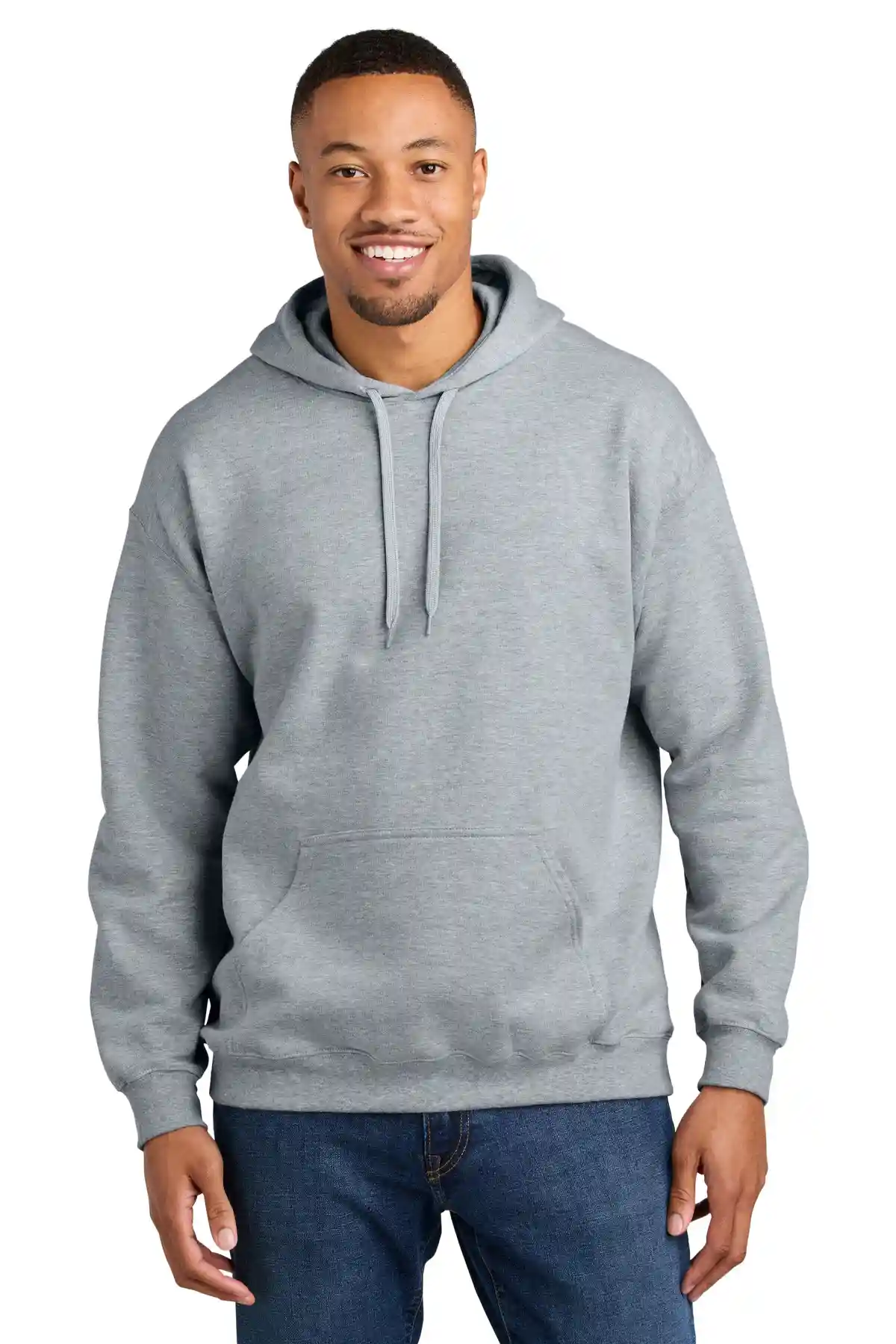 Crafted for ultimate comfort, this hoodie blends 80/20 cotton/poly with a 100% cotton face. Two-piece, dyed-to-match jersey fabric-lined hood, dropped shoulder, 1x1 rib knit with spandex cuffs and bottom band, and double-needle hem ensure durability. Select colors available from XS to 5XL.