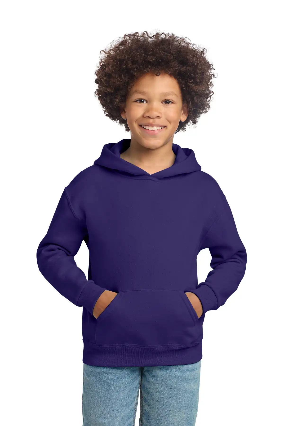 Enjoy comfort in this 8-ounce youth pullover hoodie made of 50/50 NuBlend® pill-resistant fleece. High-stitch density ensures a smooth-printing surface for customization. Two-ply hood offers coverage without a drawcord for safety. 1x1 rib knit cuffs and waistband maintain classic shape and flexibility. Front pouch pocket provides functional storage for small essentials. Double-needle coverseamed neck, armholes, and waistband add durability. Tear-away label ensures itch-free wear. Lightweight yet warm, this hoodie is perfect for school, sports, or casual layering. Fabric resists pilling and retains shape wash after wash. A versatile addition to any youth wardrobe.