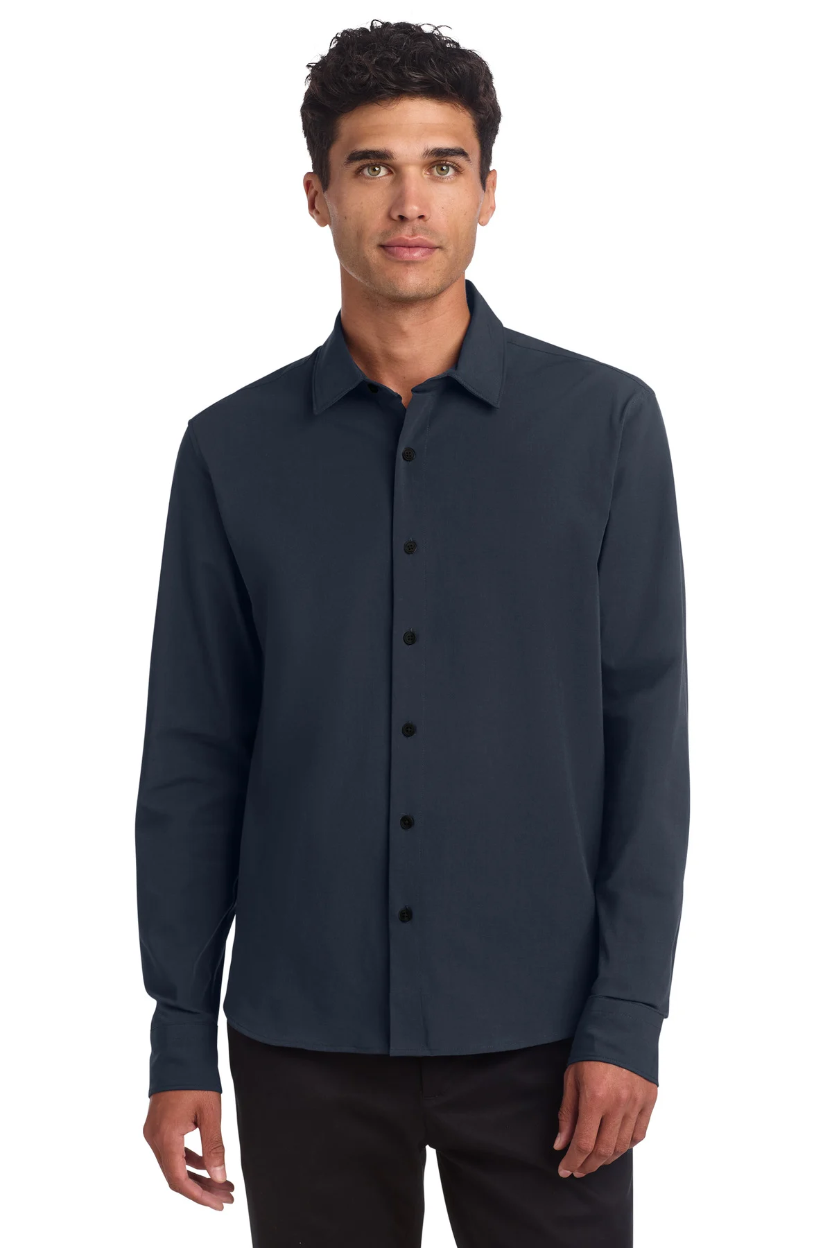 Tailored with precision, this stretch woven shirt moves effortlessly from day to night. The end-on-end weave creates a subtle heathered texture. Stretch-infused fabric enhances comfort and mobility. Easy-care construction simplifies maintenance. An open collar offers relaxed sophistication. Satin-finished rimmed buttons elevate the overall look. A structured back yoke improves fit and shape. Gusset detailing adds durability and visual interest. Lightweight construction ensures breathable wear. Designed to be worn tucked or untucked. Ideal for modern business or smart-casual settings.