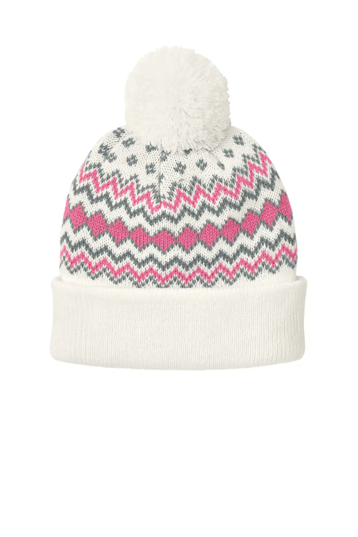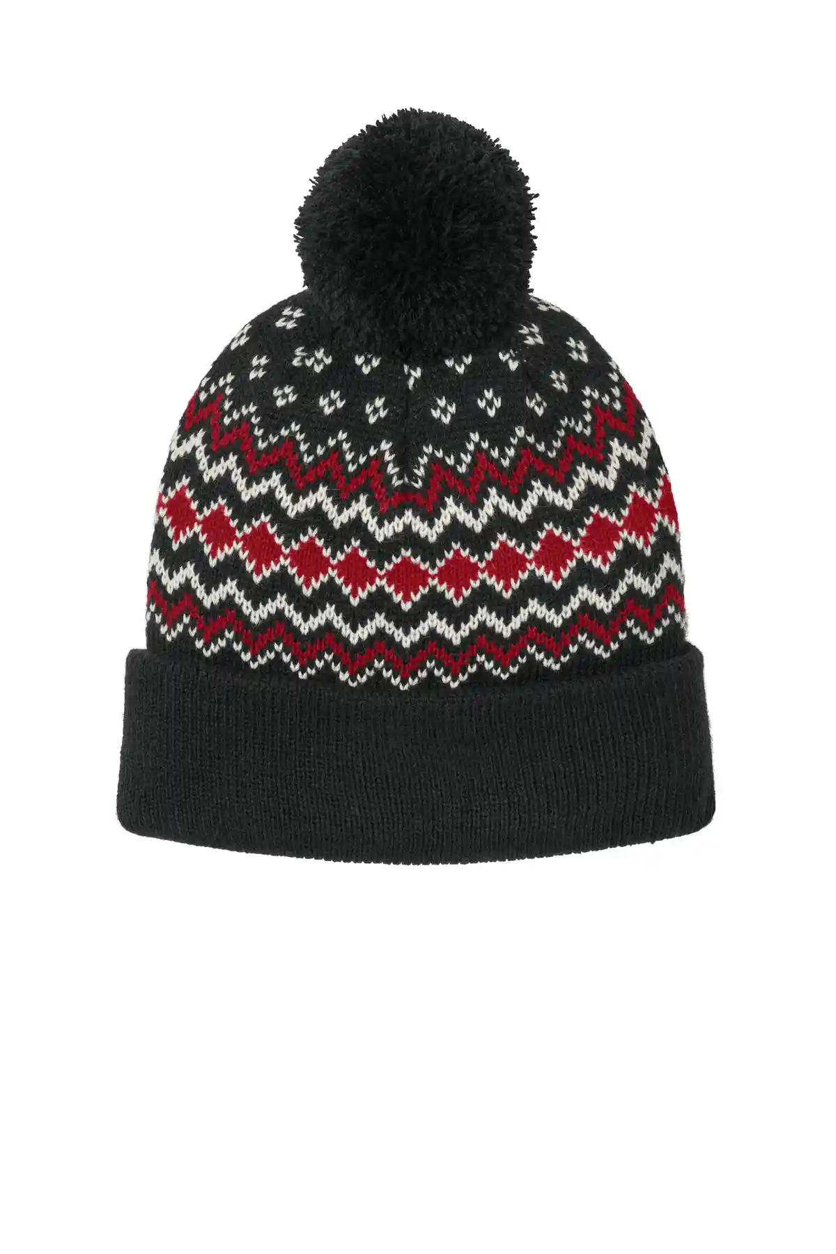 The Alpine Pom Beanie is designed to deliver superior warmth with standout winter style. Made from durable acrylic knit, it provides excellent insulation in cold conditions. Its double-layer construction enhances heat retention for added comfort. An eye-catching knit pattern adds visual texture and depth. Five darts at the crown improve shaping and fit. The adjustable three-inch cuff allows for personalized coverage and styling. The pom detail adds a classic alpine-inspired finish. Lightweight yet warm, it remains comfortable during extended wear. Designed to retain its shape after repeated use. Ideal for winter outings, casual wear, or branded accessories. Offers both function and fashion. A dependable cold-weather staple.