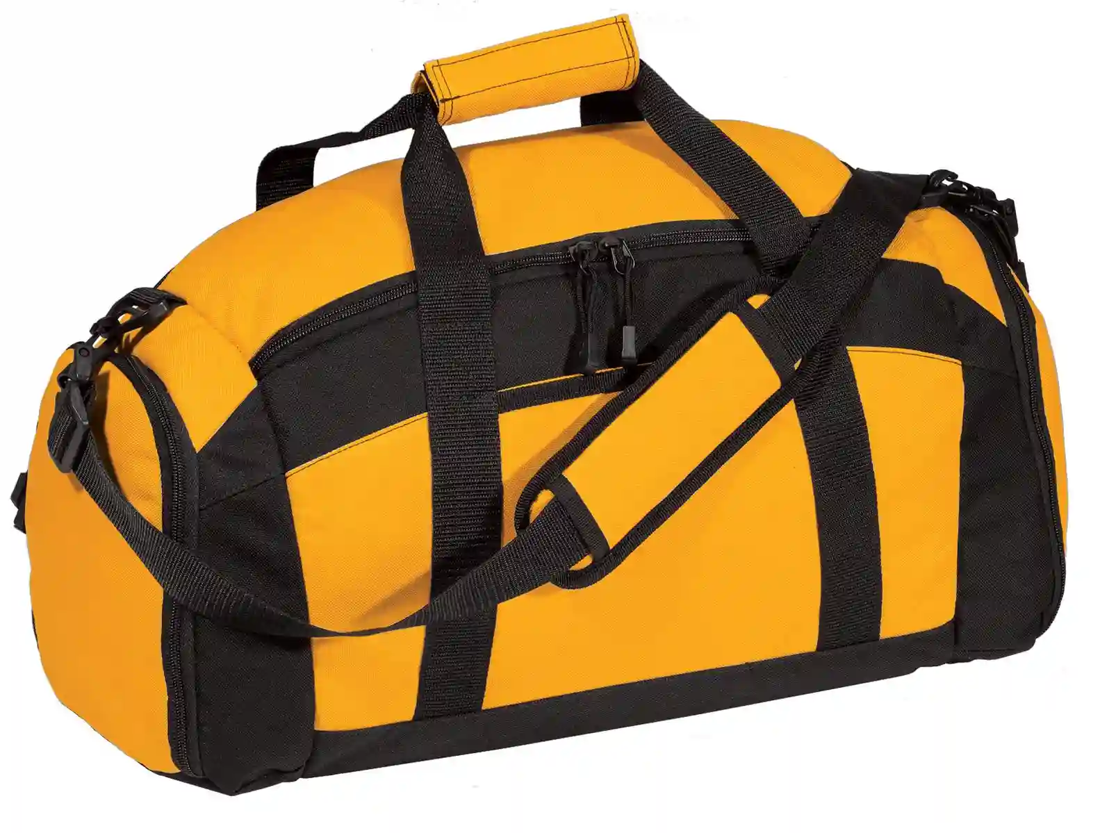 Built to support everything from warm-ups to cool-downs, this gym bag offers reliable storage in a straightforward, budget-conscious design. Constructed from sturdy 600-denier polyester canvas, it provides dependable durability for frequent use. The fully lined main compartment opens wide for easy packing of clothing, towels, and workout gear. A front pocket and zippered end pocket allow for organized separation of smaller items. An additional zippered end pouch is perfect for storing shoes or damp pool gear away from clean belongings. The adjustable, detachable shoulder strap features padding for comfortable carrying over longer distances. Balanced proportions make the bag easy to carry without feeling bulky. Ideal for gym sessions, practice, or casual travel, this bag delivers essential functionality without unnecessary extras.