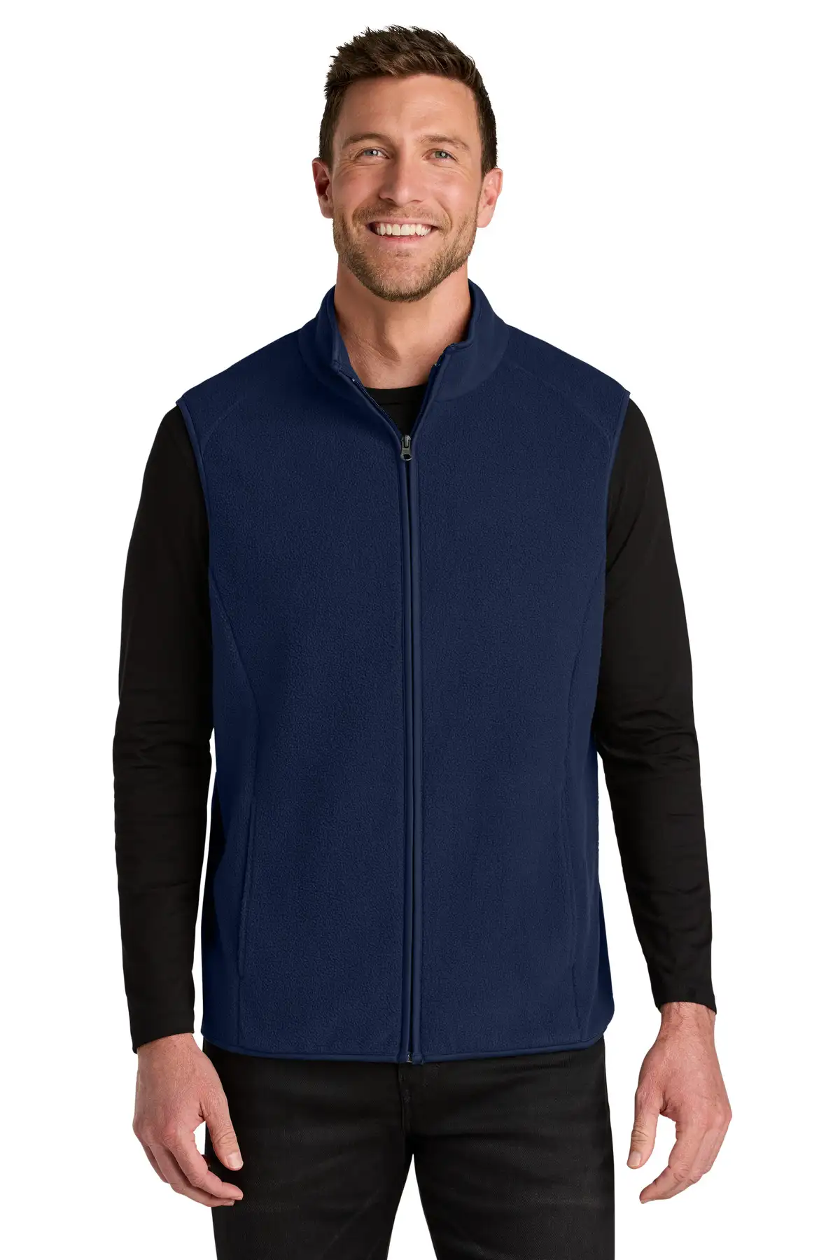 The C-FREE Fleece Vest offers eco-friendly warmth with lightweight versatility. Constructed from 8.3-ounce 100% recycled polyester fleece, it balances comfort and sustainability. Carbon footprint is measured and reduced through preferred materials and ClimeCo Certified Product™ carbon offsets. Low-pill finish ensures lasting softness, while zip-through cadet collar and binding at neck, center front, and hem provide structure. Reverse coil zipper offers secure closure, and open front pockets allow easy access to essentials. Ideal for layering over shirts or under jackets, this vest is perfect for casual wear, outdoor activities, or travel. It demonstrates that functional warmth and sustainable choices can go hand-in-hand. Durable, soft, and environmentally conscious.