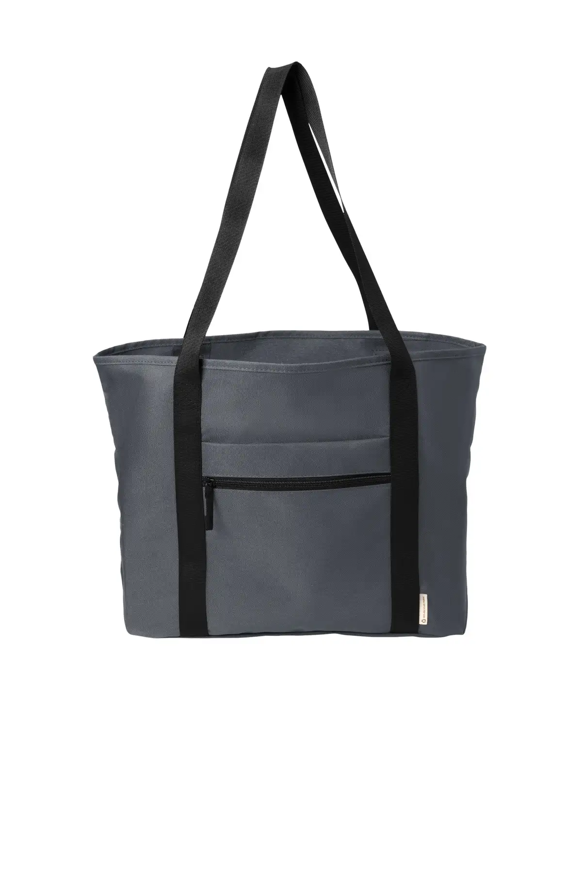 This eco-conscious tote is made from 100% recycled 600D polyester, with a carbon footprint measured and reduced through preferred materials and carbon offset programs. A front zippered pocket provides easy access to essentials, while sturdy web handles allow comfortable carrying. The spacious interior accommodates daily essentials, shopping items, or travel necessities. Its durable recycled construction ensures long-lasting use, and the exterior woven label proudly displays “100% RECYCLED FABRIC.” Lightweight and environmentally responsible, this tote is ideal for eco-conscious consumers who need a practical, stylish carryall.