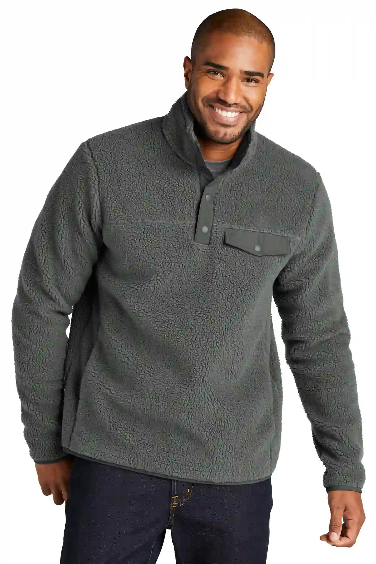 This camp-style fleece pullover delivers exceptional warmth with a textured, high-pile finish. Designed for comfort and durability, it’s ideal for outdoor adventures or casual lounging. The snap placket adds functional versatility and a rugged aesthetic. A woven chest pocket provides convenient storage with secure closure. The plush fleece traps heat effectively in colder conditions. Brushed tricot-lined hand pockets enhance comfort. Binding at cuffs and hem helps maintain shape and fit. Designed for layering or standalone wear. The pullover balances warmth with breathability. Durable materials ensure long-term use. Stylish enough for everyday wear. A cozy option with outdoor appeal.