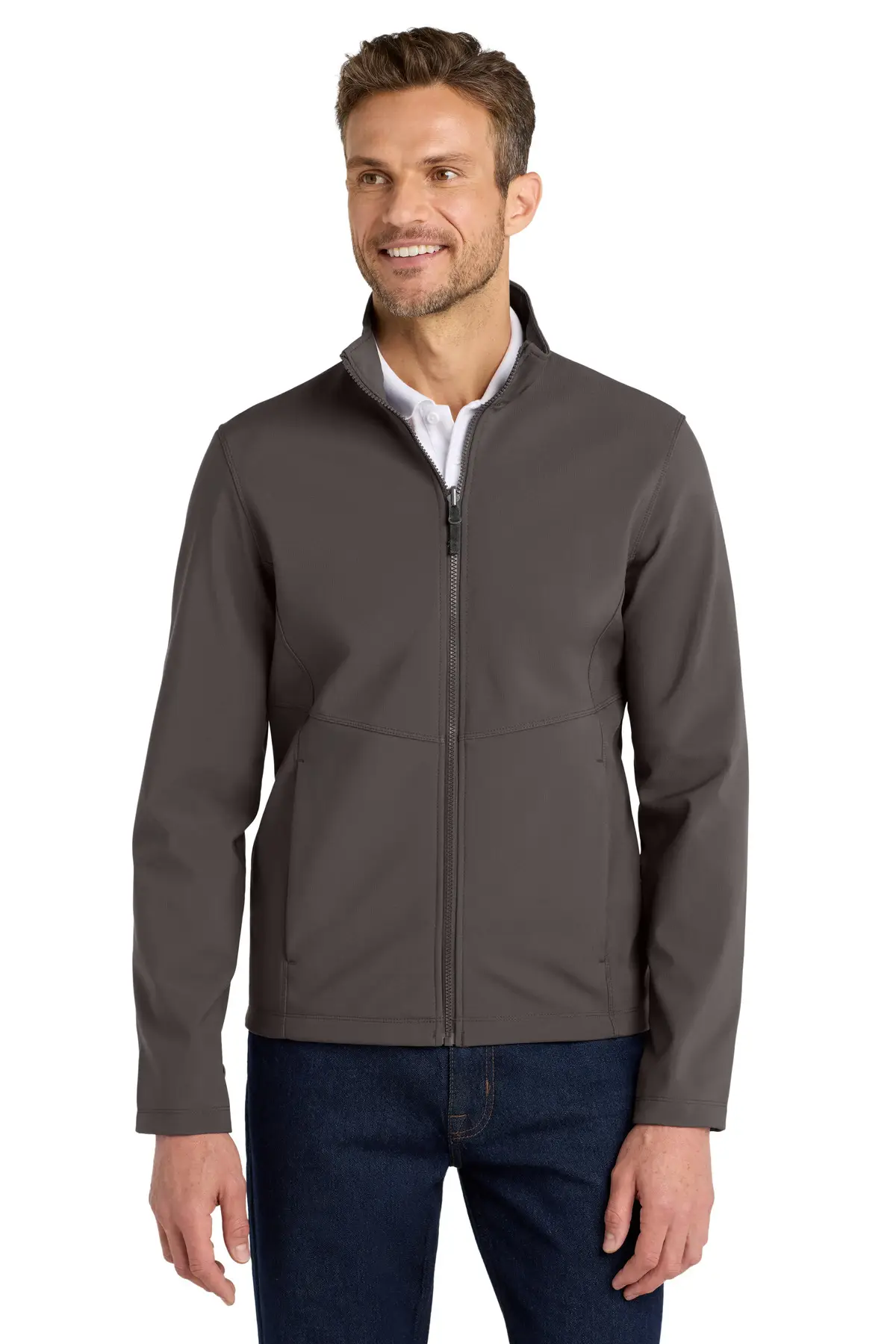 This soft shell jacket features a subtle mini ripstop texture for durability and style. Constructed from 94/6 poly/spandex woven fabric with DWR finish bonded to a water-resistant film insert, it is lined with brushed polyester tricot for comfort. Molded center front zipper and reverse-coil zippered pockets provide functionality and secure storage. Slightly longer length enhances coverage. Designed to zip into outer Collective layers via snap attachments, it allows easy layering for variable conditions. Wind- and water-resistant, breathable, and lightweight, it is perfect for professional, commuting, or casual outdoor wear. Its clean, sleek lines make it suitable for multiple occasions.