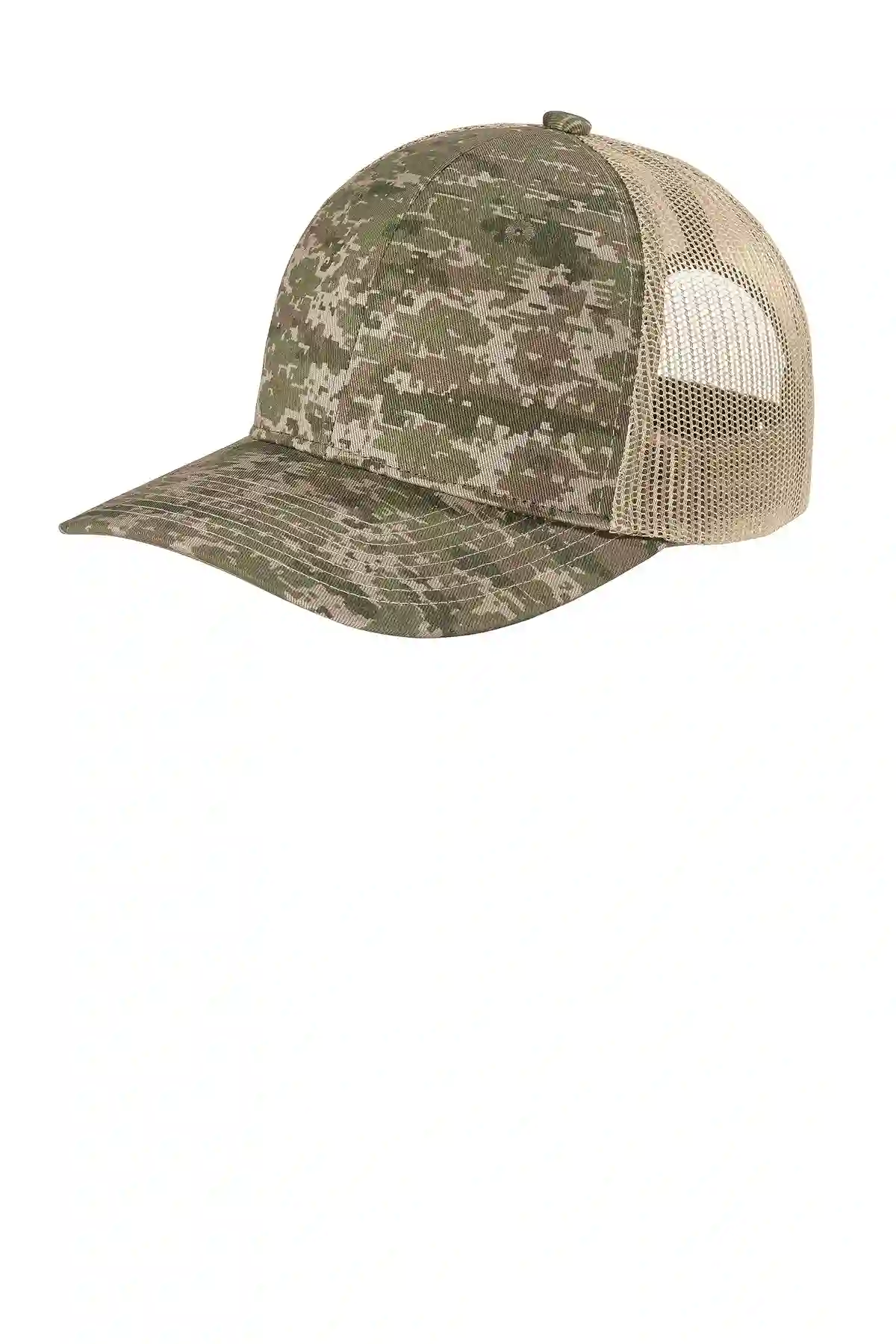 This digital camo snapback trucker cap adds a bold edge to classic trucker styling. Featuring cotton twill front panels and breathable mesh backing, it delivers comfort alongside standout design. The structured, mid-profile construction ensures shape retention and durability. An adjustable snapback closure provides a customizable fit. Perfect for outdoor wear, lifestyle fashion, or promotional use, this cap blends rugged style with everyday comfort.