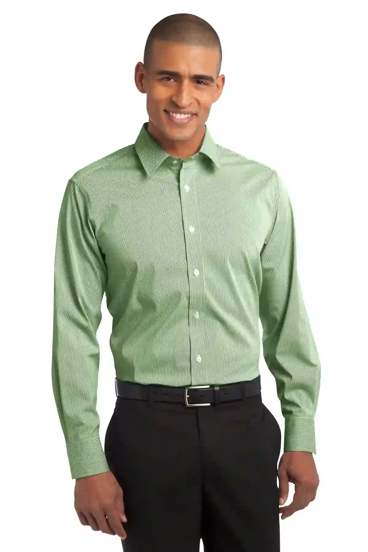 The Fine Stripe Stretch Poplin Shirt integrates subtle patterning with performance fabric to support contemporary workplace demands. Its fine stripe design delivers consistent professionalism while avoiding visual monotony. Stretch fibers allow the shirt to move fluidly with the wearer, improving comfort during long shifts. Bias-cut detailing inside the collar stand and under the cuffs reflects elevated construction standards. Outside back pleats increase range of motion, preventing stiffness. Adjustable button-through sleeve plackets enable controlled cuff positioning, while the shirttail hem supports both tucked and untucked styling. The open collar maintains a modern silhouette suitable for evolving dress codes. Although discontinued, its balanced combination of flexibility and structured design preserves its value in existing inventories.