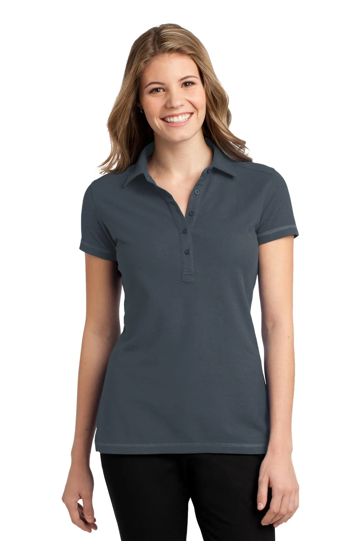 The Ladies Modern Stain-Resistant Polo is engineered for demanding work environments where appearance and durability are essential. Designed with a contemporary, trim fit, this polo delivers a polished look while maintaining exceptional comfort throughout long shifts. The cotton/poly double pique knit wicks moisture efficiently, helping regulate body temperature in fast-paced settings. Advanced odor-fighting properties keep the garment feeling fresh, while wrinkle- and shrink-resistance ensure a consistently neat appearance. A soil-release finish makes laundering easier and helps stains wash out effortlessly, making this polo especially well-suited for restaurants, bars, and food service operations. Thoughtful tailoring, including princess seams and a shaped back yoke, enhances the feminine silhouette without restricting movement.
