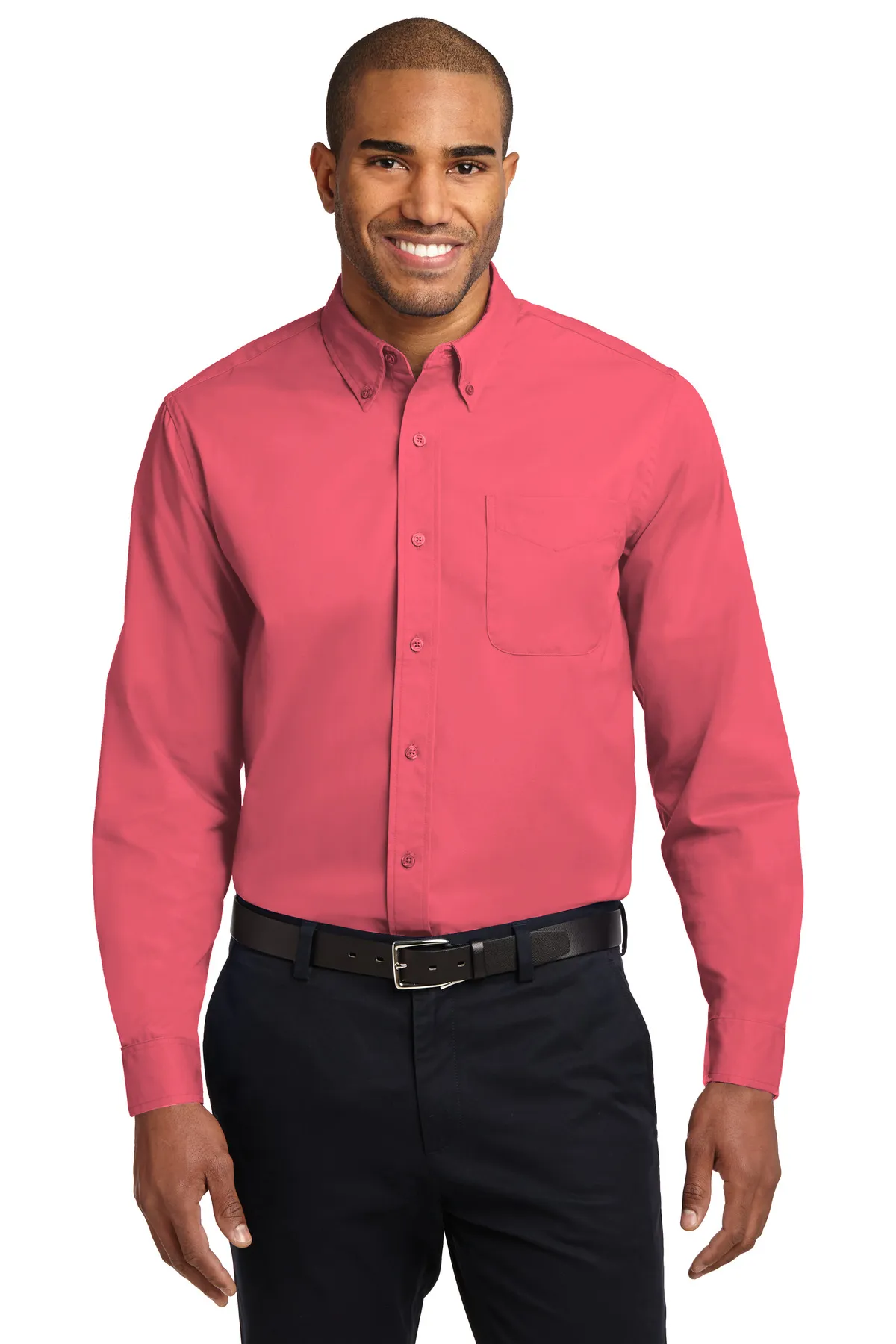 The Long Sleeve Easy Care Shirt focuses on operational efficiency without compromising workplace standards. Constructed from a balanced cotton-poly blend, it delivers comfort alongside dependable wrinkle resistance. Designed as a wash-and-wear solution, it reduces preparation time while maintaining a crisp look. The button-down collar reinforces structure, ensuring reliable presentation across long workdays. Dyed-to-match buttons support a streamlined aesthetic, and the left chest pocket adds practical functionality. A back box pleat enhances mobility, preventing pulling across the shoulders during movement. Adjustable cuffs allow refinement of sleeve fit, improving overall comfort. Durable enough for repeated laundering, this shirt performs consistently across large uniform programs. Direct in purpose and reliable in execution, it is built for organizations that prioritize efficiency and professionalism equally.