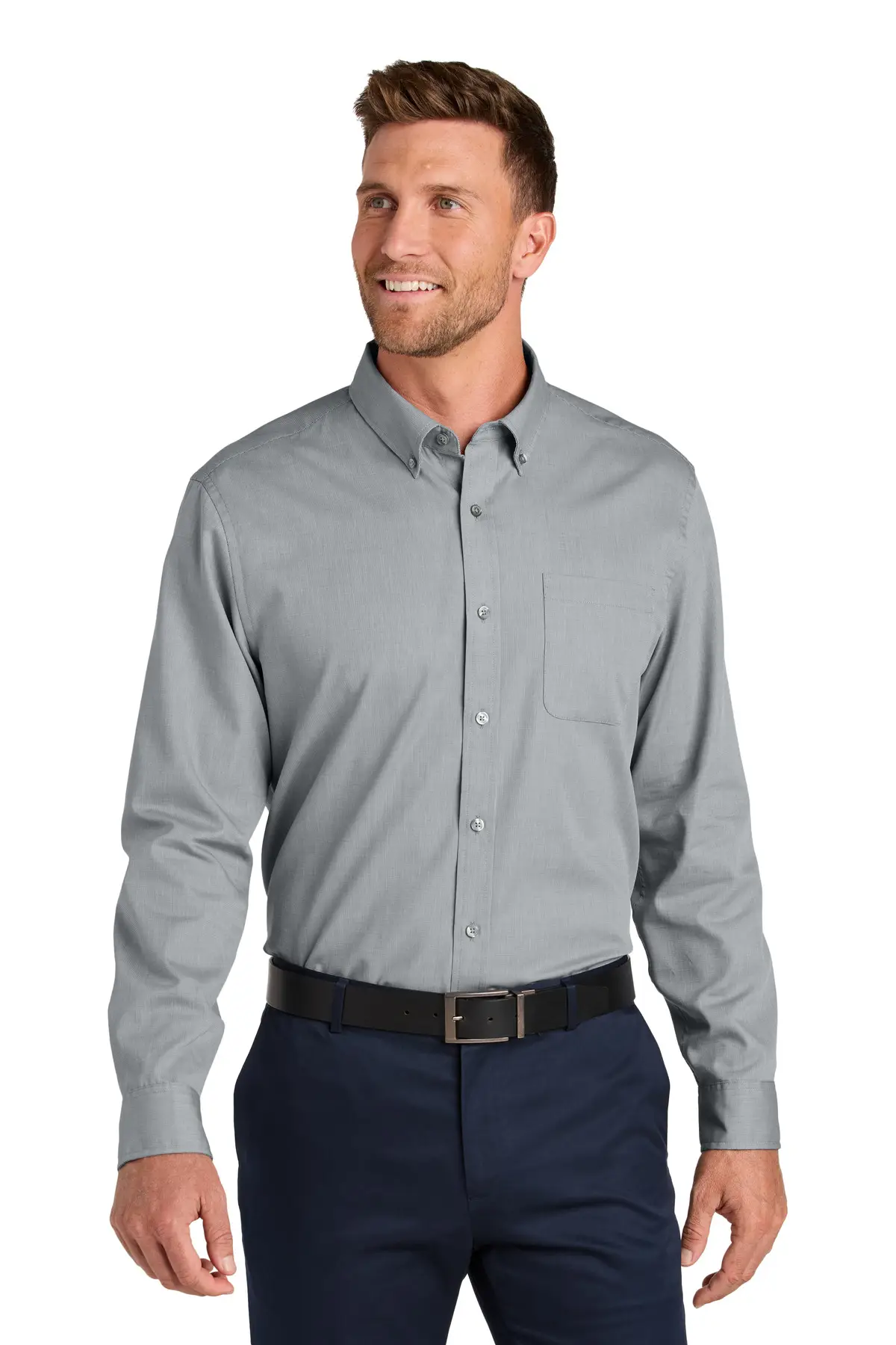 Upgrade business-casual styling with the Long Sleeve Nailhead Easy Care Shirt. Made from 4-ounce, 60/40 cotton/recycled polyester, this shirt offers subtle two-color nailhead patterning for refinement and professional appeal. Easy Care finish reduces wrinkles, while a button-down collar, left chest pocket, center back pleat, dyed-to-match pearlized buttons, and rounded adjustable barrel cuffs create a versatile, polished uniform option ideal for office, retail, or corporate settings.