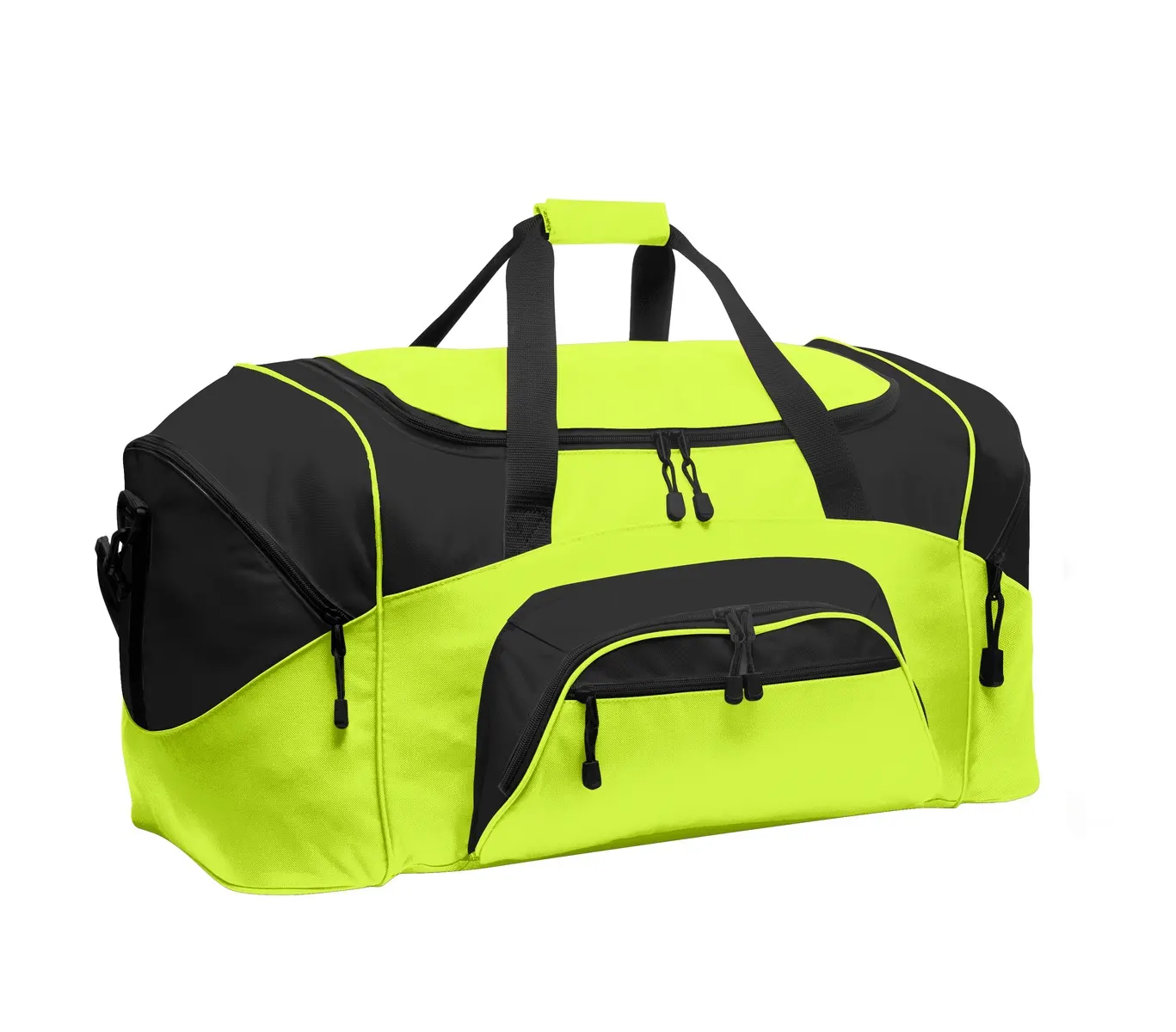 Designed as a best-selling staple, this standard colorblock sport duffel offers generous capacity and dependable construction for athletes and teams. Made from 600-denier polyester canvas with a durable lining, it withstands heavy use season after season. The D-shaped zippered entry allows quick access to the main compartment, simplifying packing and unpacking. Two large zippered end pockets provide space for shoes or equipment, while additional front zippered pockets help organize smaller items. The padded carry handle enhances comfort during transport, and the adjustable shoulder strap offers flexible carrying options. Bold colorblocking adds a sporty aesthetic while improving visibility. Ideal for practices, games, or travel, this duffel balances capacity, organization, and durability.