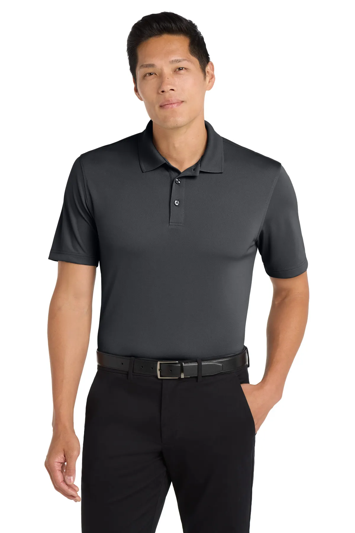 With a UPF rating of 30, it helps protect against UV exposure. The flat knit collar, pearlized dyed-to-match buttons, and side vents maintain structure and airflow. A tag-free label improves comfort during extended wear. Designed for performance-focused uniforming.