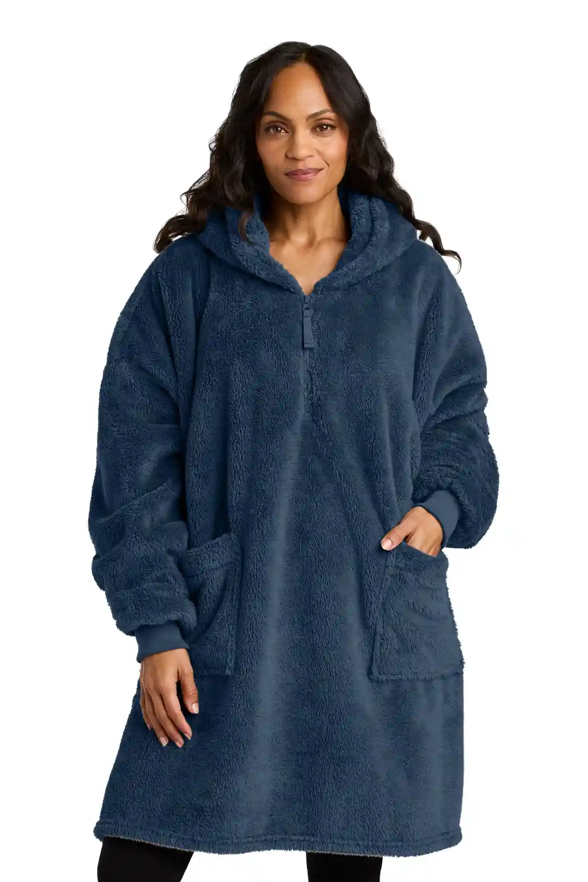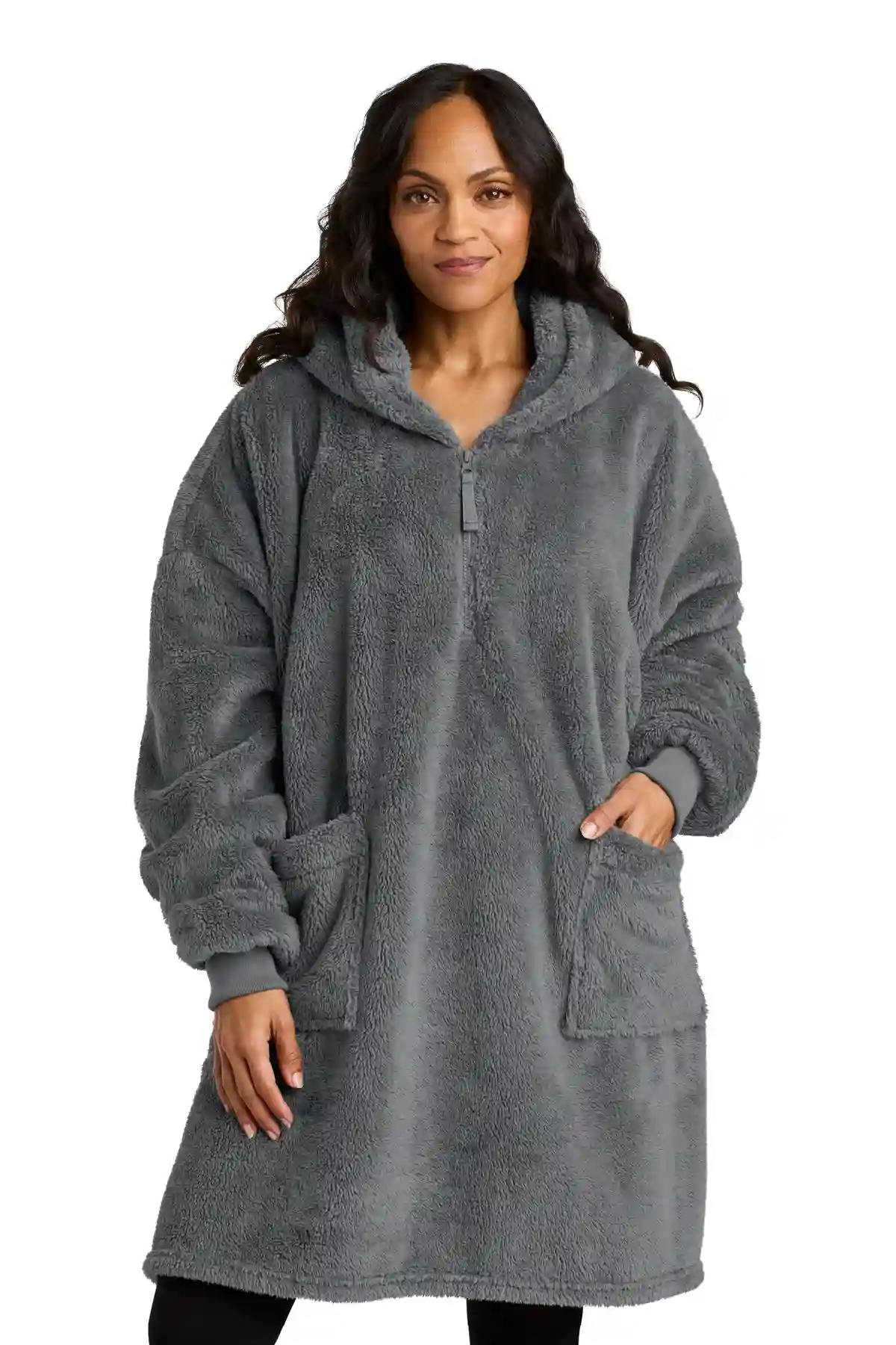 Soft, fluffy, and effortlessly comfortable, this plush poncho is made for relaxed lounging. The two-sided brushed fleece provides warmth without weight, making it suitable for year-round use. A half-zip popover style allows for easy wear, while the generous hood adds an extra layer of coziness. Patch pockets keep essentials close, and the drop-tail hem offers added coverage. Designed with an oversized fit, this poncho is perfect for unwinding in total comfort.
