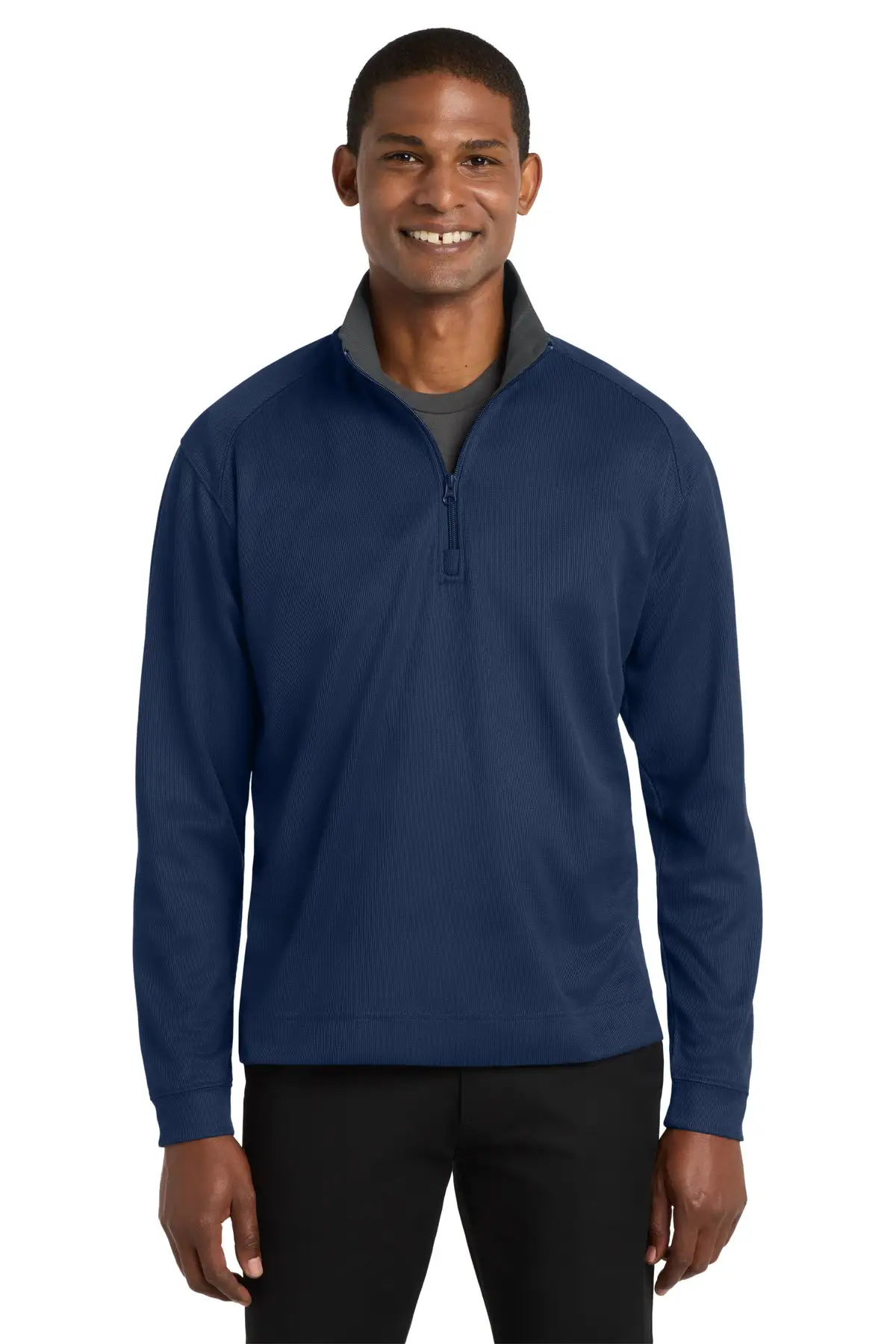 The Port Authority Vertical Texture 1/4-Zip Pullover offers a refined alternative to traditional sweaters. Featuring a durable polyester exterior and soft cotton interior, it provides comfort and structure. The vertical texture adds visual interest. Twill tape trim at the neck enhances durability. A contrast rollover at the collar adds a modern accent. Self-fabric cuffs ensure a clean finish. Side vents improve mobility. Designed for easy layering, this pullover works seamlessly for office or weekend wear.