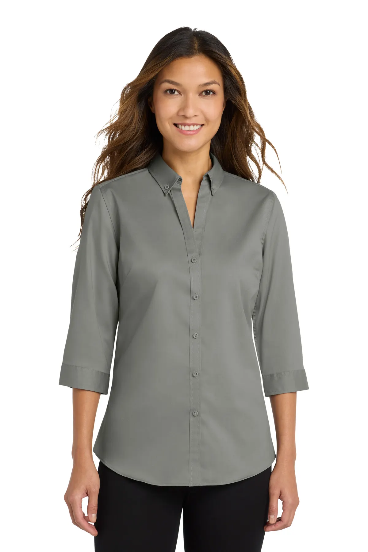 This 3/4-sleeve SuperPro™ Twill Shirt delivers a refined balance between coverage and comfort. Crafted from a wrinkle-resistant, stain-release fabric, it maintains a polished appearance throughout the day. The cotton-poly twill blend offers durability while remaining soft against the skin. A button-down collar with an open neckline adds a tailored yet approachable look. Bust darts create a flattering silhouette without restricting movement. Back shoulder pleats enhance mobility, making the shirt suitable for active roles. Rounded single-button cuffs provide a clean, structured sleeve finish. Dyed-to-match buttons ensure a cohesive design. Ideal for professional, service, or hospitality settings, this shirt combines functional performance with timeless styling.