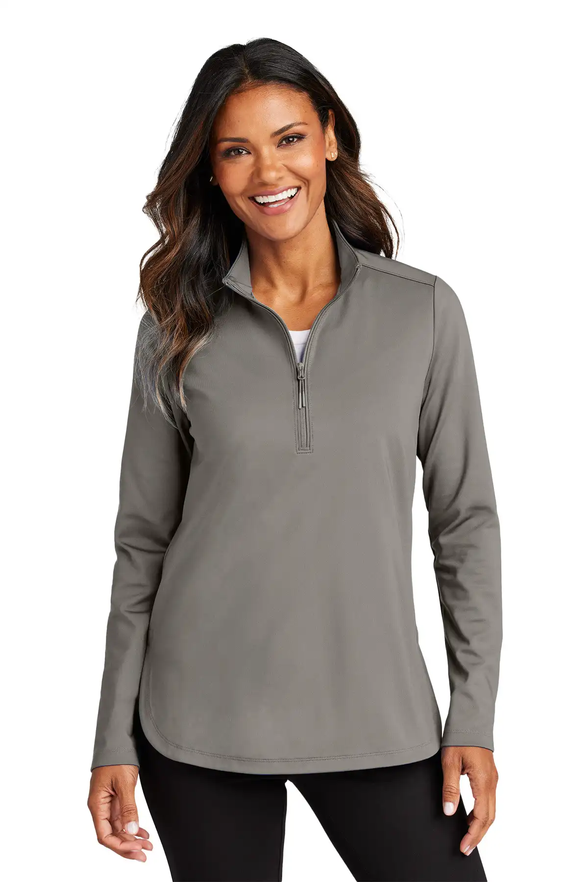 This 7.7-ounce 1/4-Zip combines eco-conscious materials with performance features. Available in solids (89% recycled polyester / 11% spandex) and heathers (81% recycled polyester / 8% polyester / 11% spandex), it is snag-resistant, moisture-wicking, and UPF 50+. Forward shoulder, self-piped zipper placket, dyed-to-match recycled reverse coil zipper with silicone-tipped drawcord, self-turned cuffs, scalloped drop-tail hem, and deep side vents ensure comfort and mobility. Tag-free label completes this sustainable performance piece.
