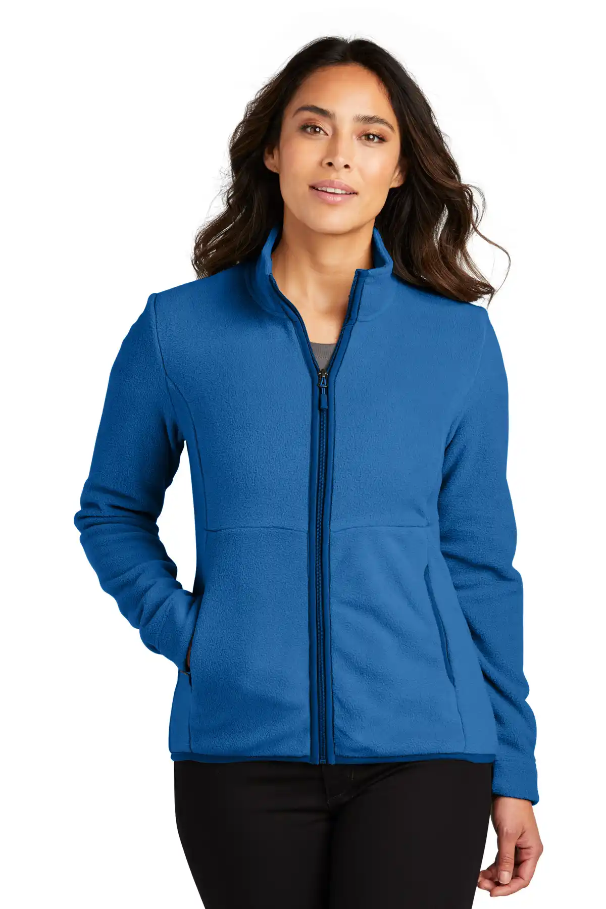The Women’s Connection Fleece Jacket offers warmth without bulk. Anti-pill fleece ensures long-lasting appearance. Stretch binding details elevate the design. Midweight construction allows versatile layering. Front zippered pockets provide secure storage. Ideal as a sweater alternative or light outerwear.