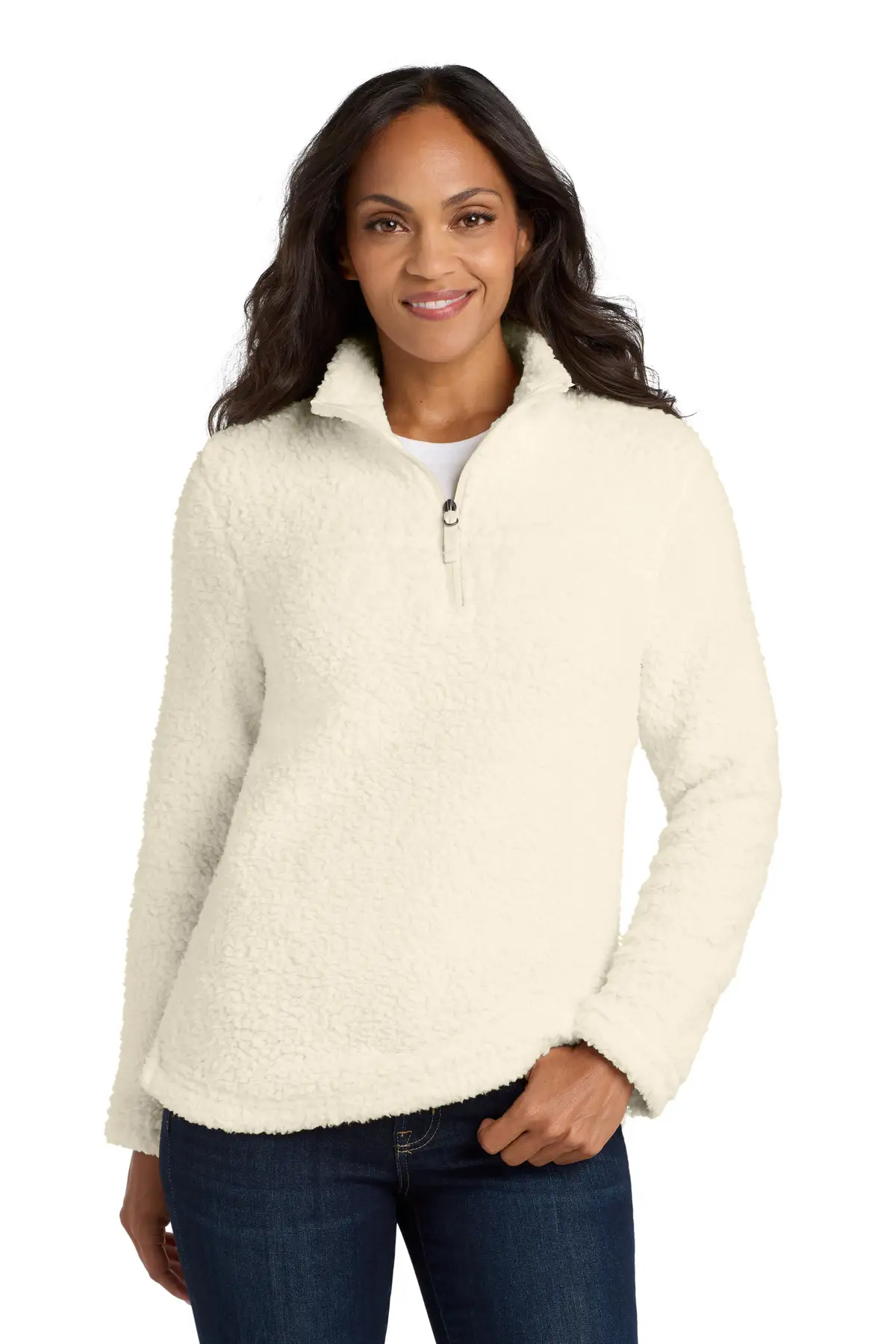 The Women’s Cozy 1/4-Zip Fleece delivers plush warmth with stylish comfort. Faux shearling fleece offers an ultra-soft feel. Lightweight warmth makes it perfect for cooler days. A reverse coil zipper adds durability. Dyed-to-match details enhance a clean finish. Open cuffs and hem provide relaxed comfort. Ideal for casual wear or layering.