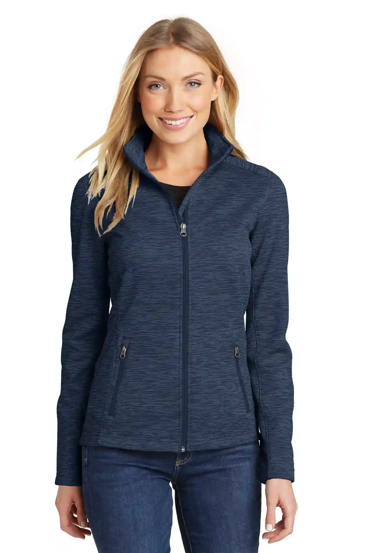 This fleece jacket features a subtle digital stripe texture that delivers a modern, refined look. Designed for versatility, it transitions effortlessly from activewear to office-ready style. The midweight fleece fabric provides reliable warmth while remaining comfortable for extended wear. A low-pill finish ensures the jacket maintains a clean appearance over time. The streamlined silhouette complements a wide range of outfits. Full-zip styling allows for easy layering throughout the day. Secure zippered pockets add practical storage. Open cuffs and hem enhance comfort and mobility. Ideal for daily wear in cooler conditions. A smart balance of performance and polish.