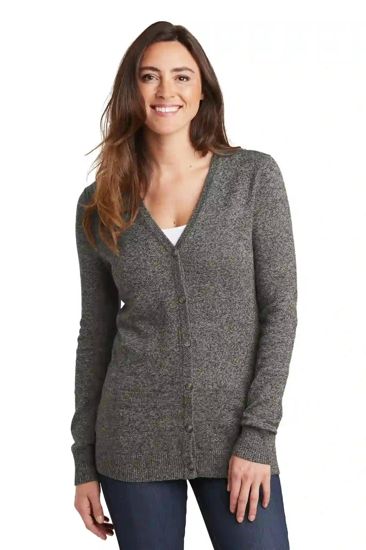 This two-tone marled cardigan adds a stylish touch to professional or casual outfits. Made from 60/40 cotton/acrylic, it is fully-fashioned for lasting structure. Dyed-to-match buttons complement welt pockets trimmed with rib knit, and 2x2 rib knit cuffs and hem add durability and shape retention. Perfect for layering over shirts, blouses, or polos in the office or for casual wear.