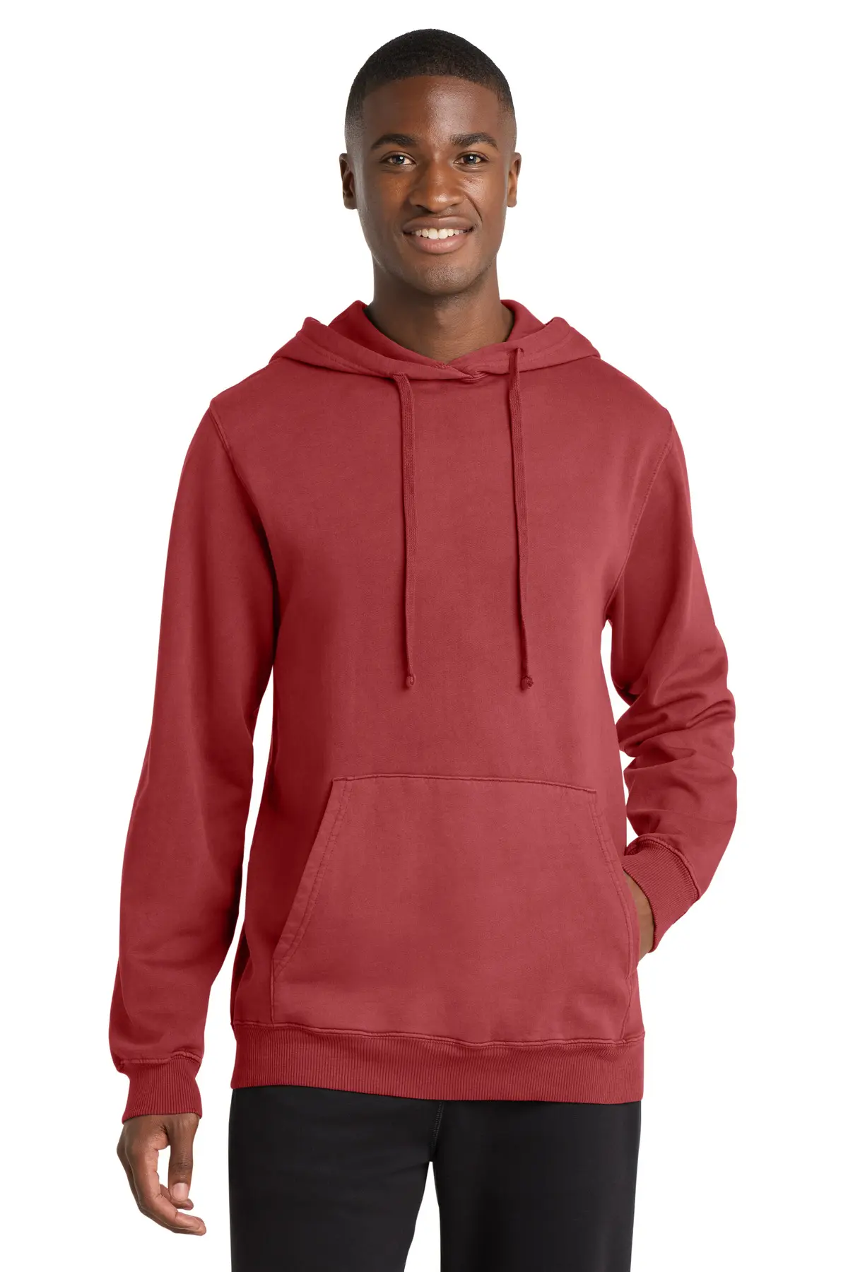 This hooded sweatshirt is crafted from 8.6-ounce 80/20 ring-spun cotton/poly fleece with a 100% cotton face for superior softness. The jersey-lined hood features dyed-to-match flat drawcords for adjustable fit. Front pouch pocket provides practicality, and side seams offer a contoured feminine silhouette. Tear-away labels allow comfort and relabeling flexibility. Perfect for casual wear, lounging, or layering, the garment-dyed finish creates a soft, vintage look with unique character. A must-have staple for cozy, everyday fashion.