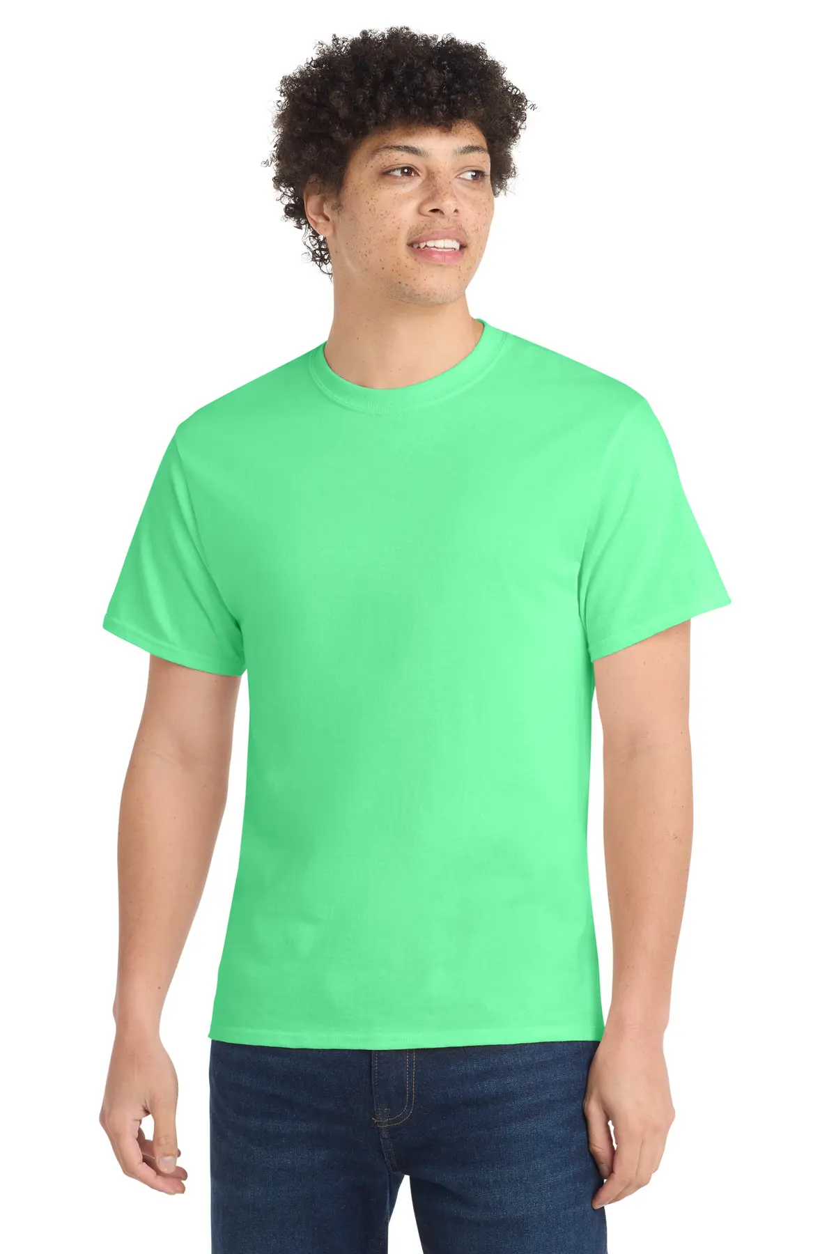An indispensable t-shirt, the Core Cotton Tee features a classic silhouette at a friendly price. Crafted from 5.4-ounce, 100% cotton or cotton/poly blends depending on color, it offers softness, durability, and breathability. Side seams create a contoured fit for a flattering feminine shape. A removable tag ensures tag-free comfort, while minimally processed natural colors retain authentic cotton tones. Perfect for casual wear, layering, or printing, this tee is a versatile and reliable wardrobe staple. Lightweight yet durable, it holds up through repeated washes.