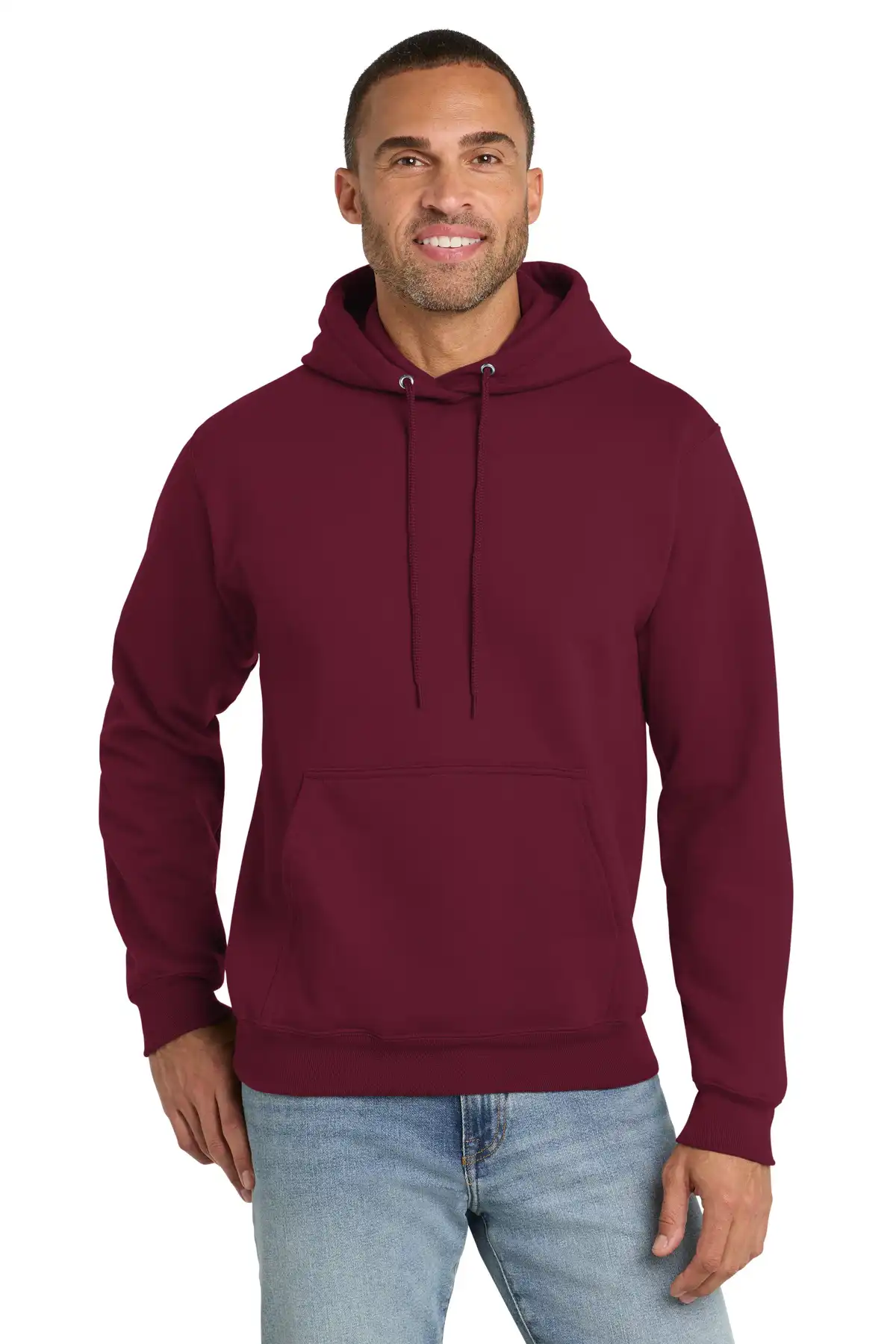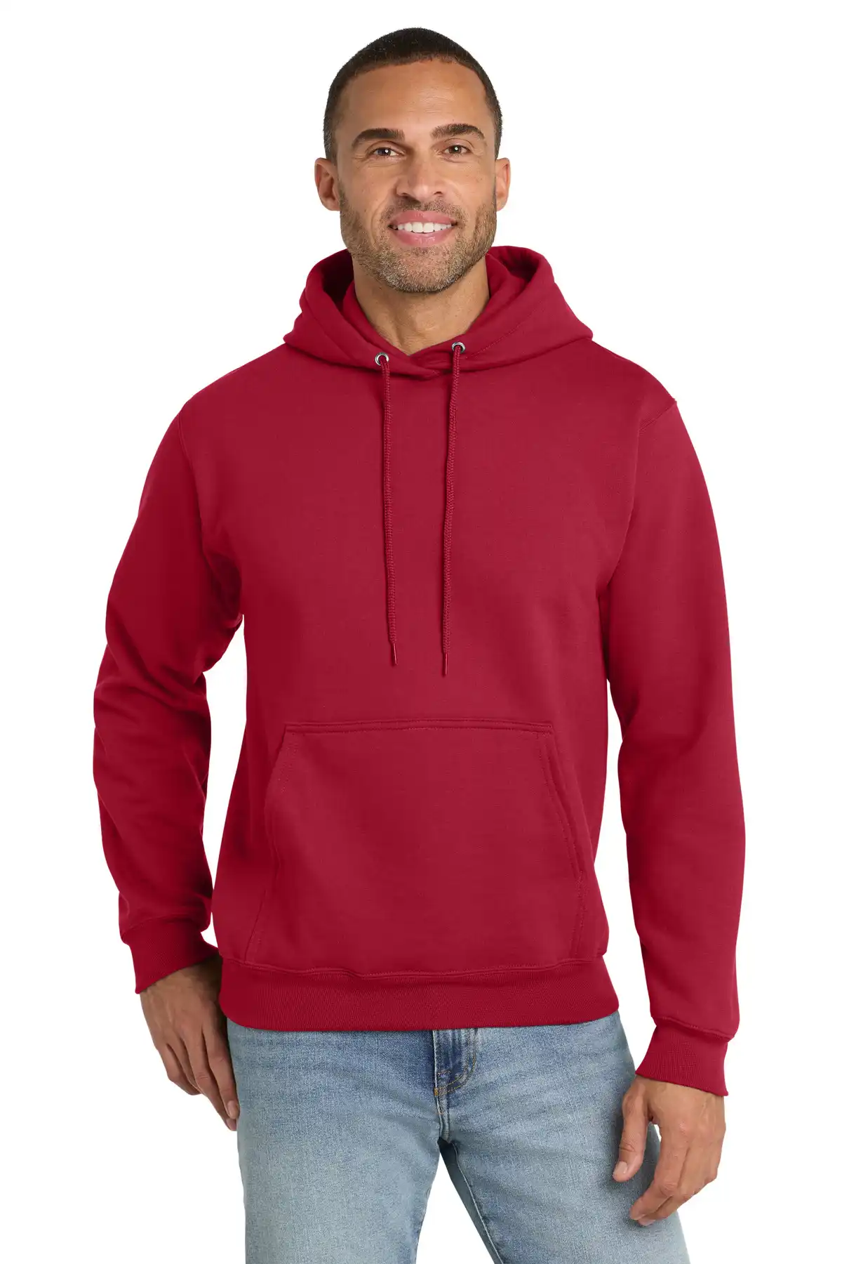 Elevate your casual wardrobe with the Port & Company® Essential Fleece Pullover Hooded Sweatshirt. Made with 9-ounce 50/50 cotton/poly fleece, it delivers a rich, soft hand feel combined with long-lasting durability. The unlined hood adds a relaxed silhouette while pouch pockets provide practical storage and cozy hand warmth. Air-jet yarn enhances softness and reduces pilling, giving this sweatshirt a premium touch. Tear-away labels prevent irritation, and reinforced stitching ensures it stands up to repeated wear. Perfect for lounging at home, running errands, or layering over tees, this versatile piece blends comfort, functionality, and style. Its tailored fit and luxurious fleece make it ideal for anyone seeking everyday comfort without compromising elegance.