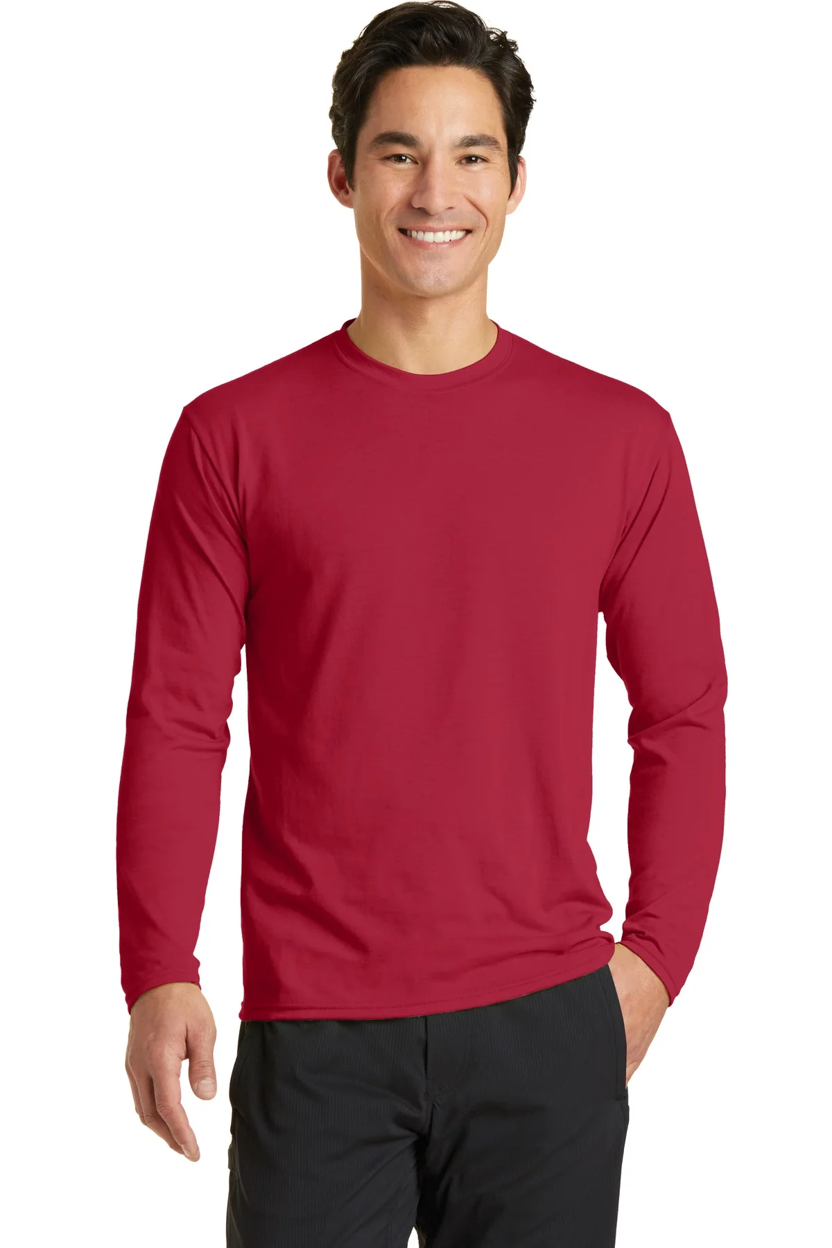 This long sleeve performance blend tee combines comfort, performance, and style. The 4.5-ounce 65/35 poly/cotton fabric offers a soft cotton hand feel, while Dry Zone® moisture-wicking technology keeps you cool and dry. Hemmed cuffs provide a secure fit, and side seams contour the body for a flattering silhouette. Removable tags allow for a tag-free, comfortable experience. Perfect for workouts, outdoor activities, or casual wear, this long sleeve version provides added coverage without sacrificing breathability. Durable and lightweight, it retains its shape and softness after repeated washes. Suitable for layering or standalone wear, this tee is versatile and reliable.