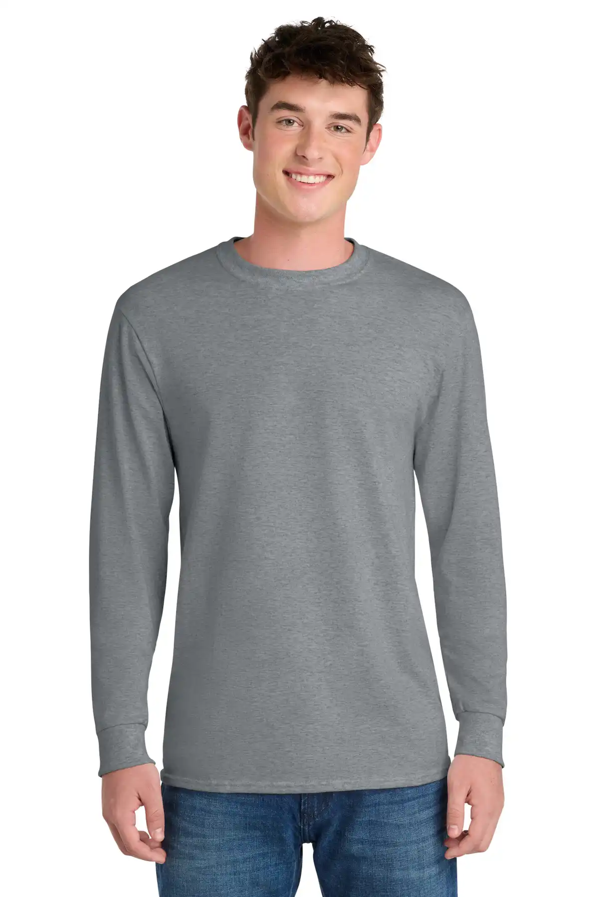 A tall version of the classic long sleeve Core Blend Tee, offering extra body length for a modern fit. Made from 5.5-ounce, 50/50 cotton/poly, this tee provides a soft hand feel, breathable comfort, and long-lasting durability. Side seams give a flattering silhouette, and the removable tag allows a tag-free wearing experience. Perfect for casual wear, layering, or team events, with special care recommended for neon fabrics when decorating.