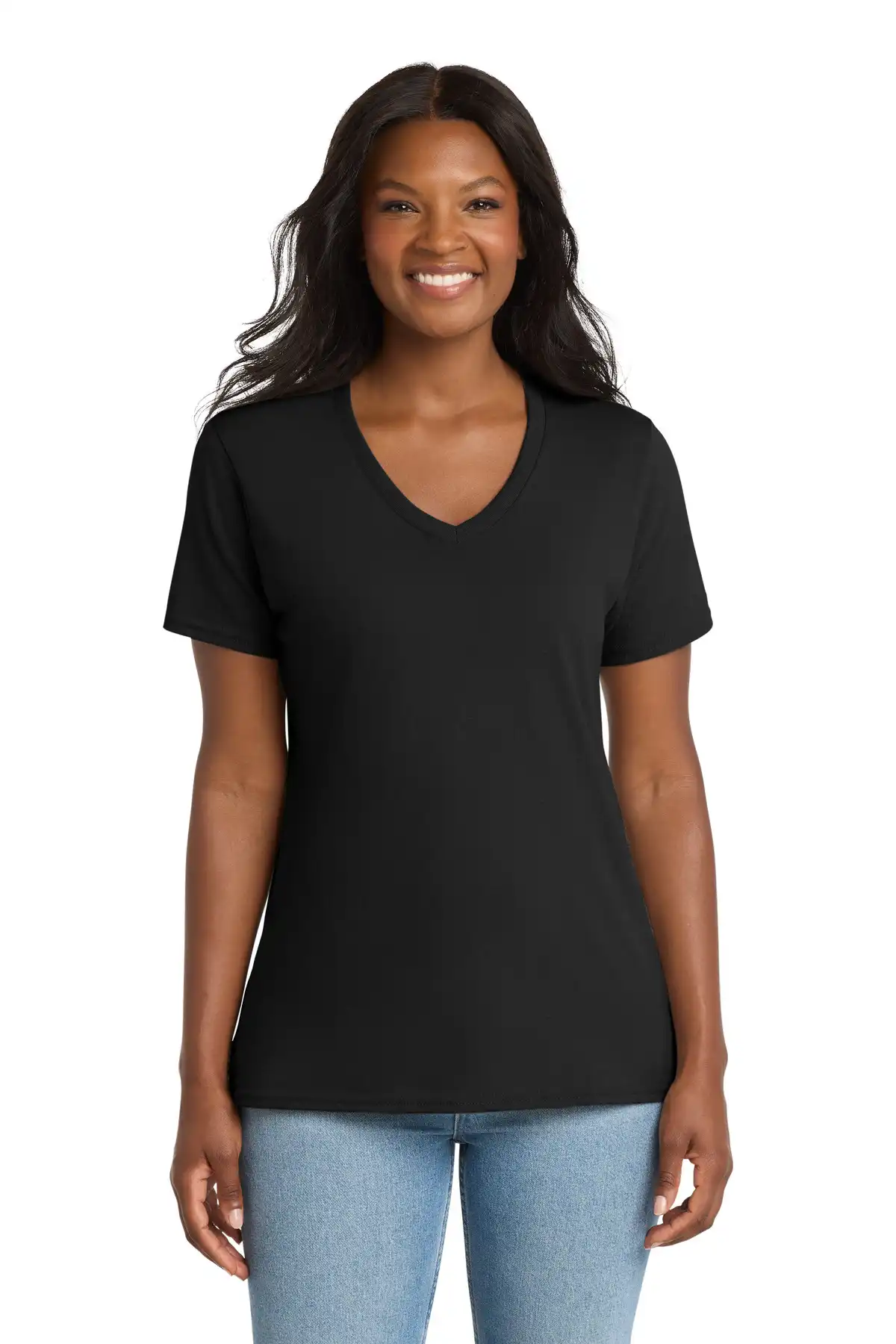 This women’s V-neck core cotton tee offers a modern update on a budget-friendly classic. Made from 5.4-ounce 100% cotton or cotton/poly blends (Neons 50/50, Athletic Heather 90/10, Ash 98/2), it features side seams and a contoured, feminine fit for a flattering silhouette. The soft, breathable fabric ensures all-day comfort, while the removable label allows for convenience and relabeling. Ideal for casual wear, layering, or team events, this tee combines practicality, style, and affordability.