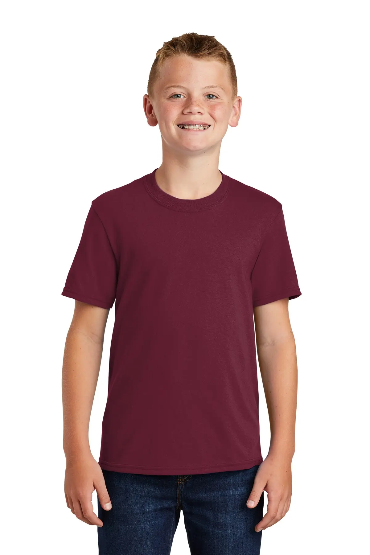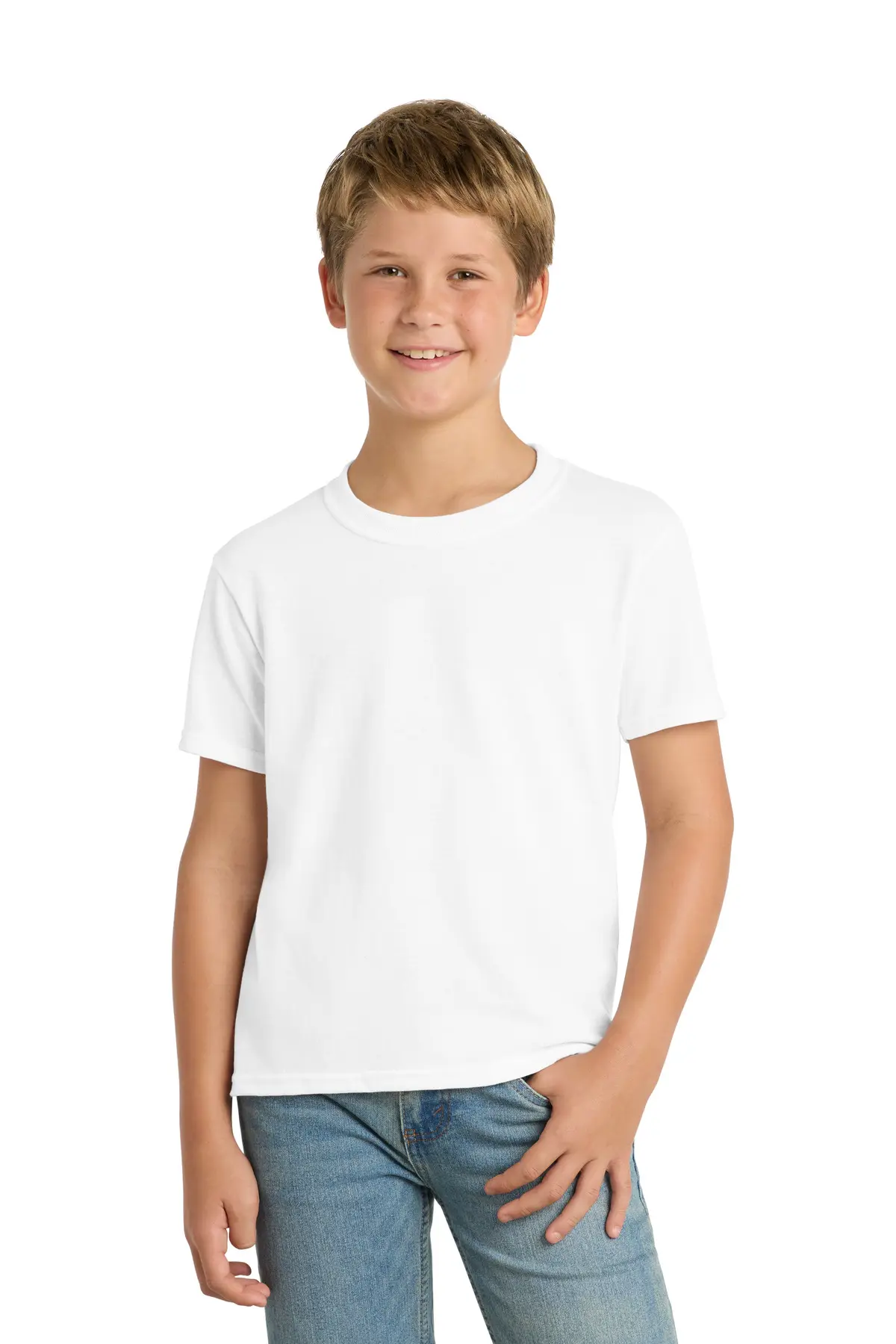 A youth-sized version of the Core Blend Tee, offering soft comfort, durability, and a classic fit. Made from 5.5-ounce, 50/50 cotton/poly, it is side-seamed for a contoured silhouette and features a removable tag for a tag-free experience. Lightweight, breathable, and versatile, it’s perfect for school, casual, or team wear. Special care is advised for neon fabrics when decorating.