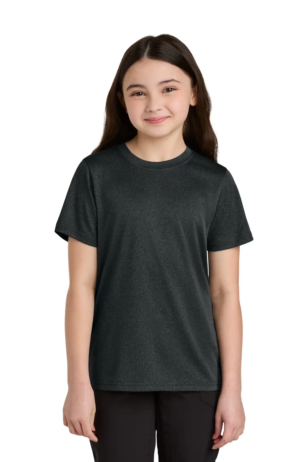 This youth heather performance tee offers the same features as the adult PC390 in a youth-friendly fit. Made from 3.8-ounce, 50/50 recycled polyester/polyester, it delivers lightweight, breathable comfort with Dry Zone® moisture-wicking technology. UPF50 sun protection shields skin during outdoor activities. Self-fabric trim at the neckline provides durability, while side seams contour the youth silhouette. Tear-away labels ensure a comfortable, tag-free experience. Ideal for school, sports, and outdoor activities, this tee retains softness, shape, and vibrant heather colors wash after wash.