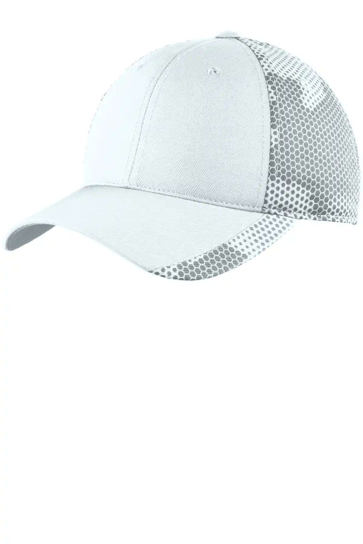 The CamoHex Cap combines high-performance moisture-wicking with an eye-catching sublimated camo pattern on the back panels and brim. A structured mid-profile provides a sleek fit, while a micro hook-and-loop closure ensures customizable sizing. Perfect for outdoor activities or game-day team visibility.