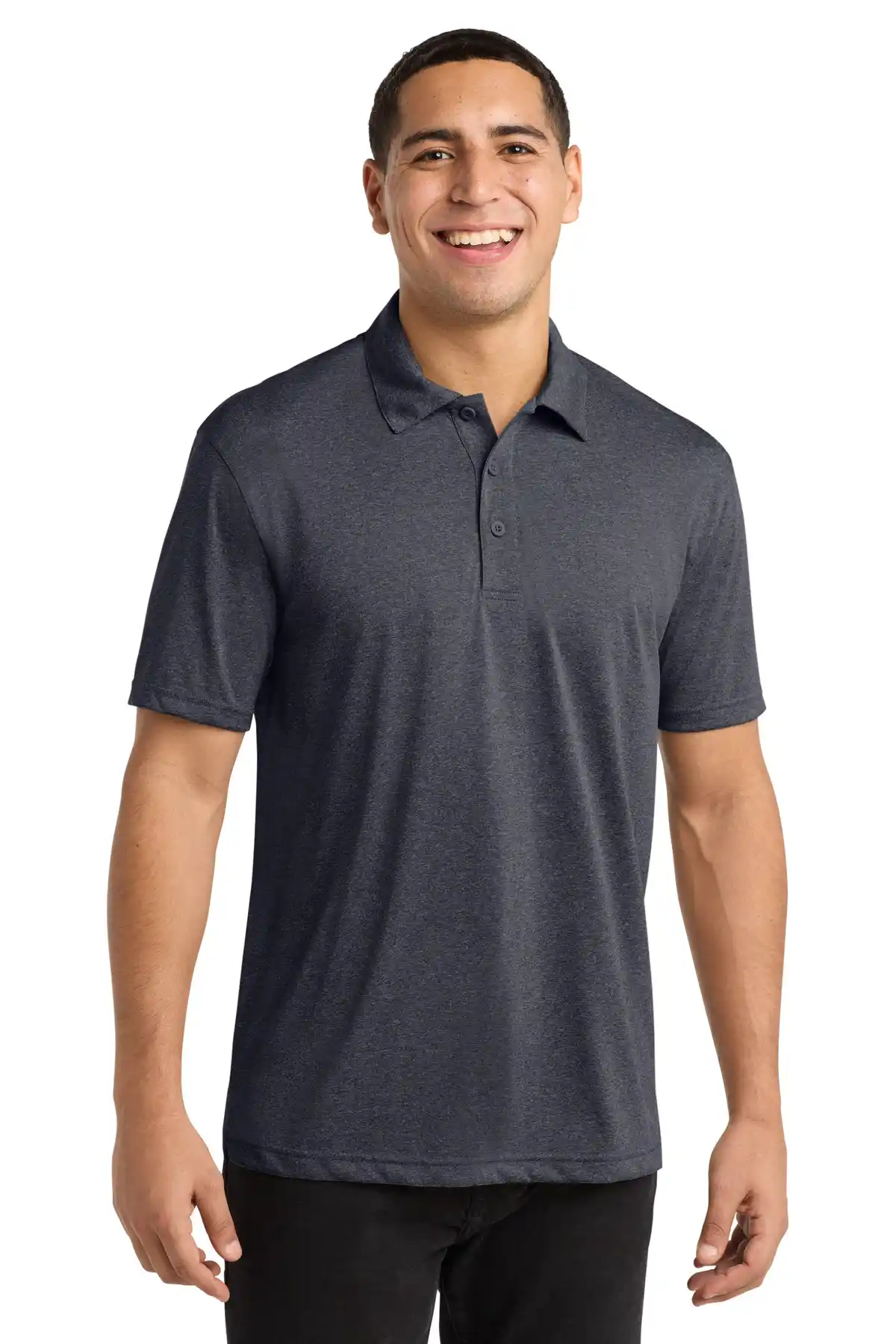 A versatile heathered design combines style and function for casual or athletic wear. Lightweight, breathable, and snag-resistant, this polo is ideal for sports, corporate events, or team apparel. Self-fabric collar, taped neck, and three-button placket maintain a professional finish.
