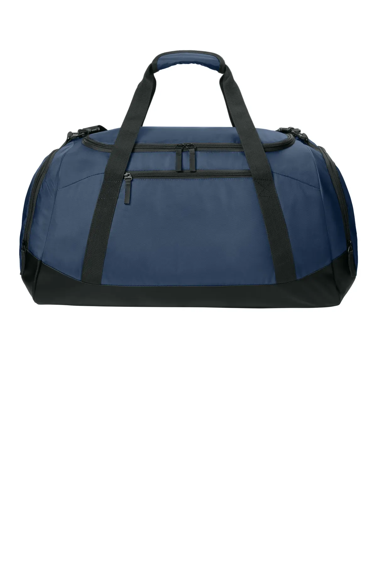 The Sport-Tek® Large Rec Duffel is designed for maximum capacity and durability. Constructed from 600D poly PVC, it handles heavy loads with ease. The D-shaped zippered opening allows full access to the spacious main compartment. An end zippered air-vent shoe compartment keeps gear separate and fresh. A front zippered pocket provides secure storage for smaller essentials. The reinforced padded bottom enhances durability for frequent travel. A removable and adjustable shoulder strap offers flexible carrying options. With a generous 64-liter capacity, this duffel is ideal for tournaments, gym sessions, or weekend travel.