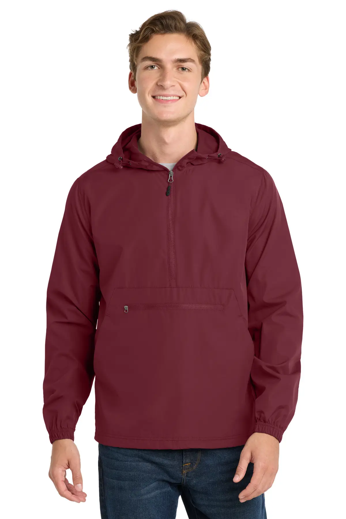This Packable Anorak is perfect for travel or gym bags, folding into its own front pocket for easy portability. Water- and wind-resistant polyester construction keeps you protected from the elements. Three-panel hood with drawcord and toggles allows adjustable coverage. Extended reverse coil zipper enables easy on/off, while elastic cuffs ensure a secure fit. Front pouch pocket and drawcord hem provide functionality and style. Ideal for hiking, travel, or layering in unpredictable weather.