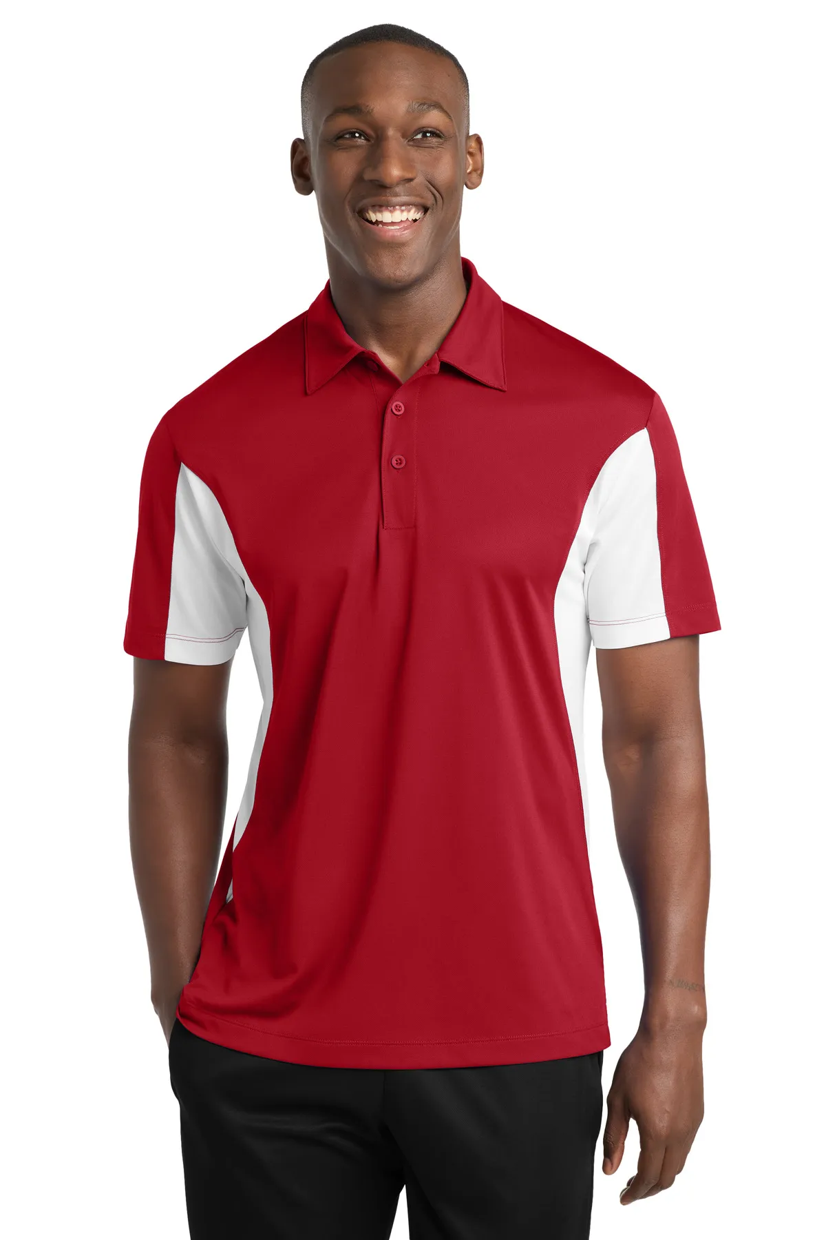Smooth micropique fabric with colorblock panels at sides, sleeves, and back collar provides a modern, athletic aesthetic. Moisture-wicking and snag-resistant polyester ensures comfort and durability. Flat-knit collar, taped neck, and three-button placket enhance professional styling. Side vents allow airflow for extended wear.