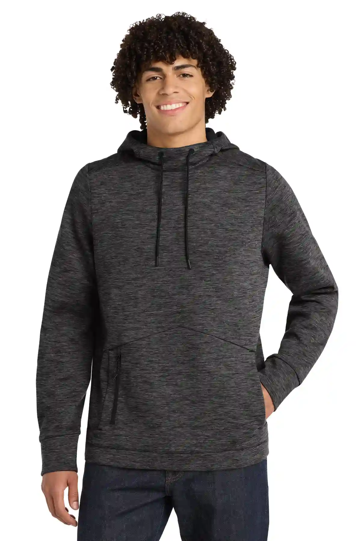 Engineered for modern performance, the Triumph Hooded Pullover combines durability with contemporary design. Constructed from 7.1-ounce, 71/29 cotton/poly double-knit fleece, it offers structured comfort and lasting shape. The three-panel hood enhances coverage and fit. A front pouch pocket with integrated rubberized zippered pocket provides secure storage. Rubberized zipper accents add a sleek, athletic look. Slight drop tail hem ensures added coverage, making it suitable for training or everyday wear.