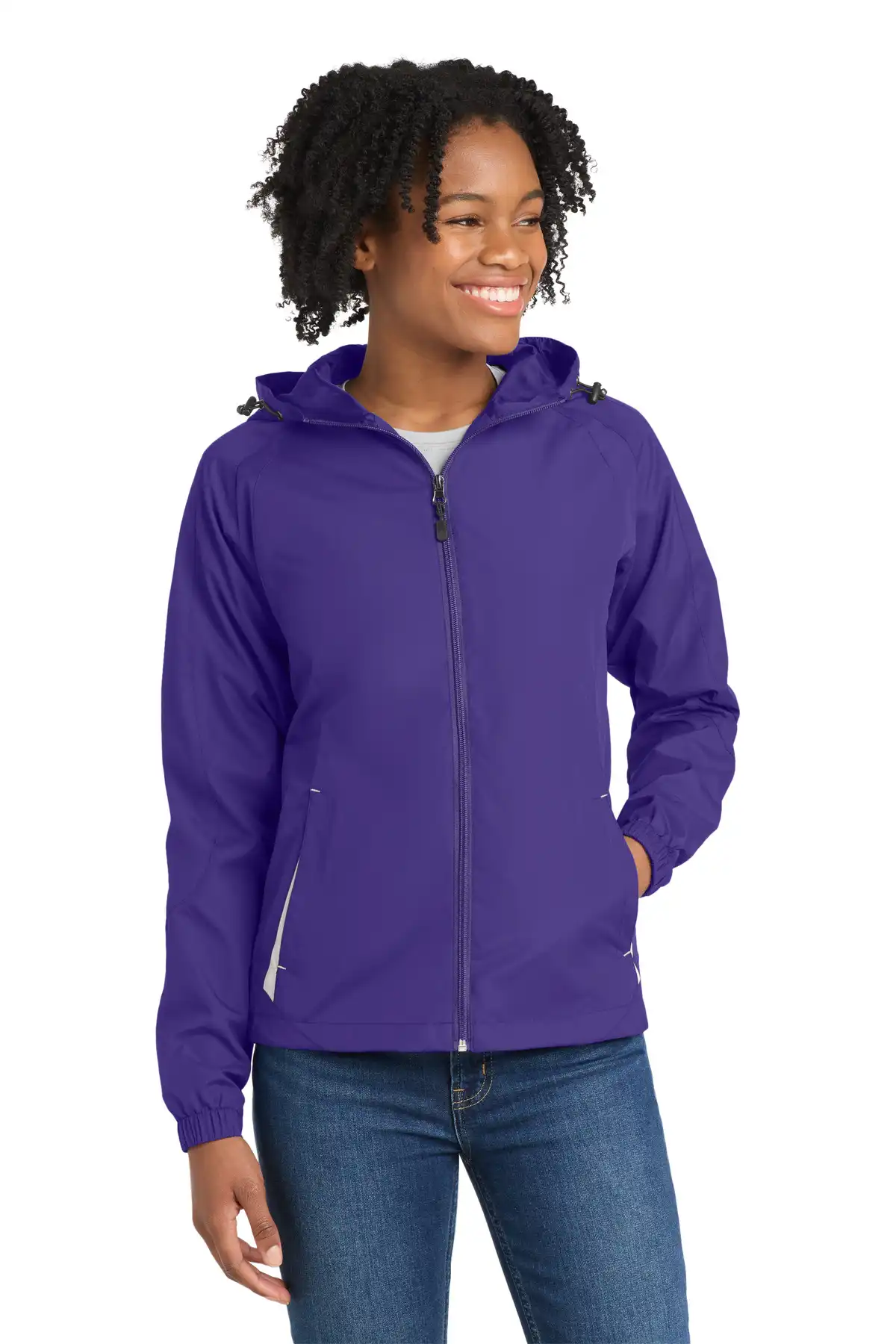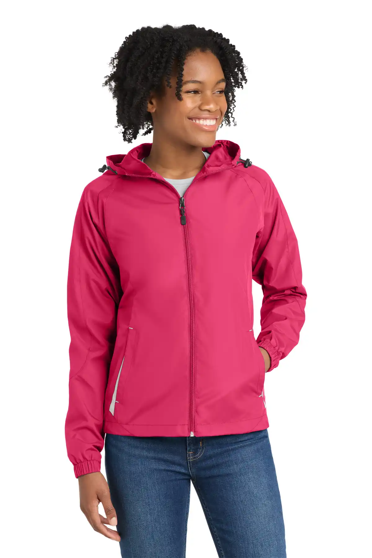 This Colorblock Hooded Raglan Jacket is engineered for outdoor activities with wind-resistant, water-repellent fabric. Drawcord hood and toggle offer adjustable coverage, while half elastic, half self-fabric cuffs ensure comfort. Mesh gusset lining enhances breathability. Front zippered pockets and decoration access pocket combine function and style. Drawcord hem with toggle allows customized fit. Perfect for sports, team training, or casual outdoor wear.