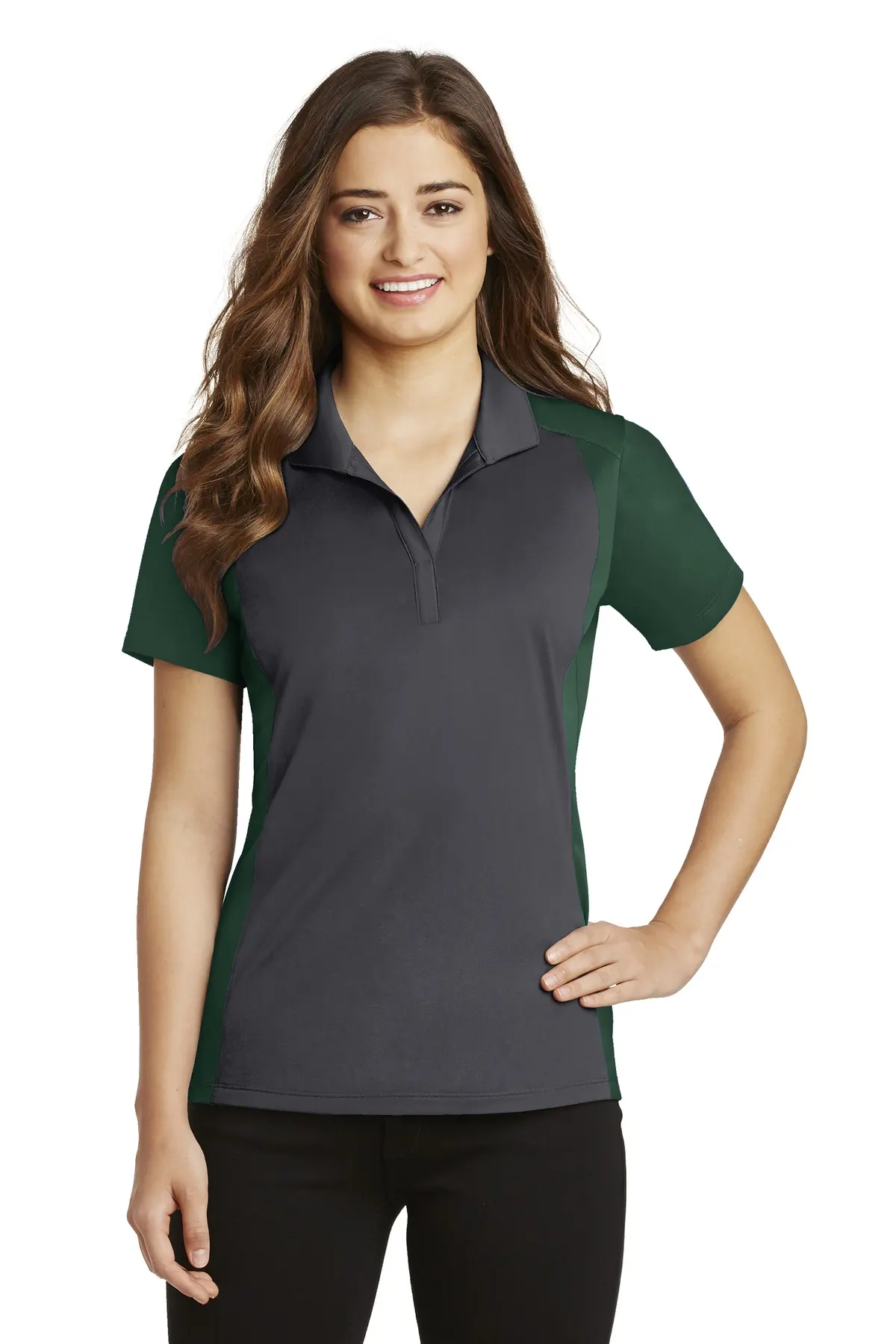 This colorblock micropique polo offers dynamic style and athletic functionality. Moisture-wicking polyester tricot resists snags while maintaining a smooth feel. Colorblocked shoulders, sleeves, and side panels enhance visual impact and team identity. Self-fabric collar and open placket provide polished styling. Set-in open hem sleeves ensure unrestricted motion. Perfect for uniforms, coaching, or versatile performance wear that balances comfort, durability, and design.