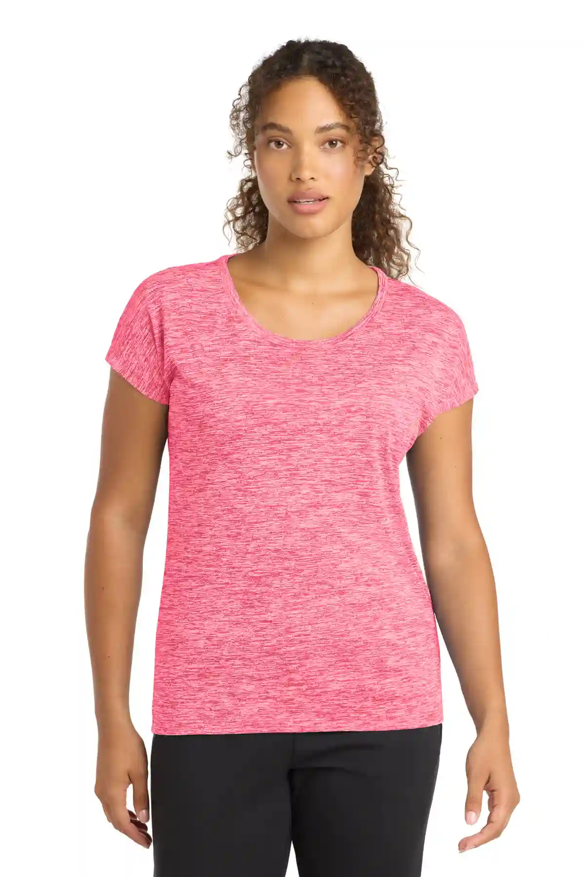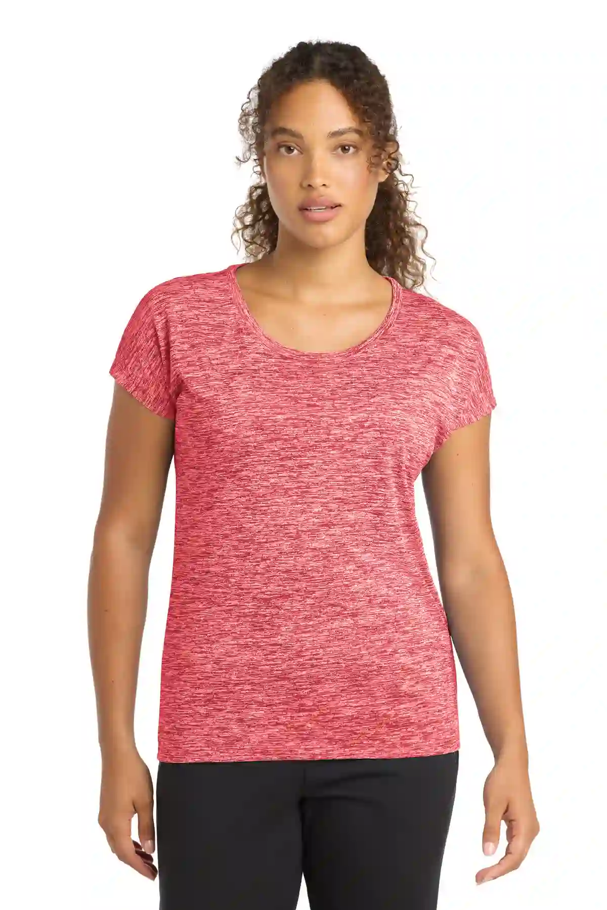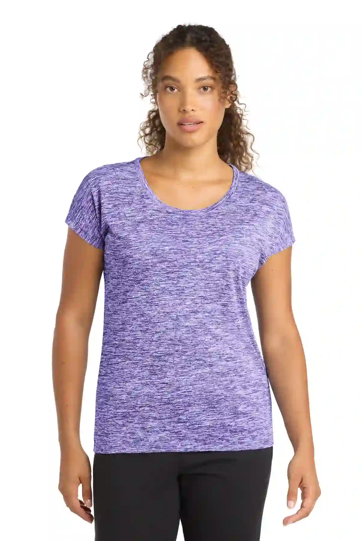 This Electric Heather Sporty Tee delivers vibrant heather styling with high-performance moisture control. Soft polyester jersey construction ensures lightweight comfort. PosiCharge technology locks in color for long-term durability. Dolman sleeves create a relaxed silhouette and enhanced range of motion. Scoop neckline maintains a clean athletic profile. Designed for energetic training sessions and active lifestyles.