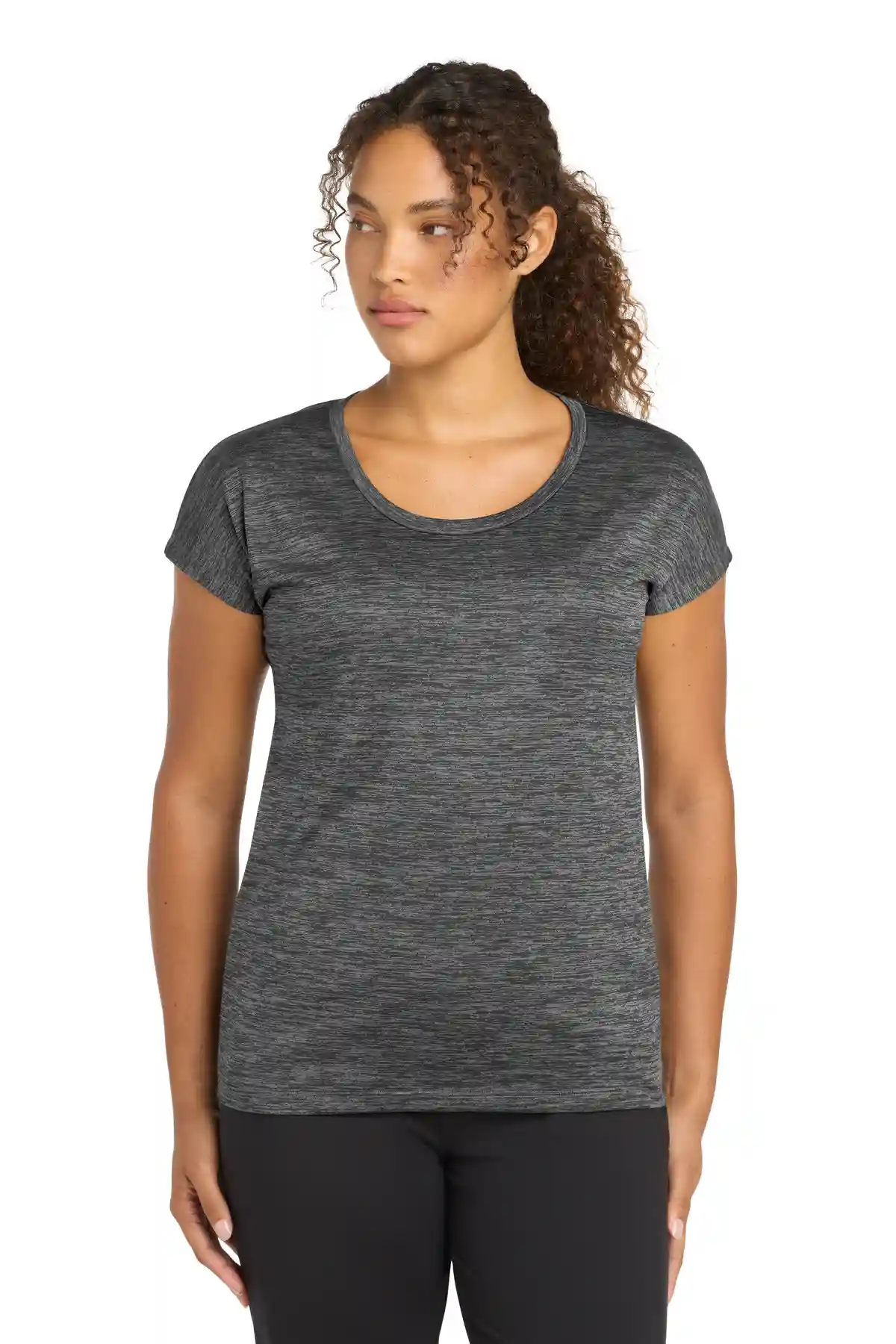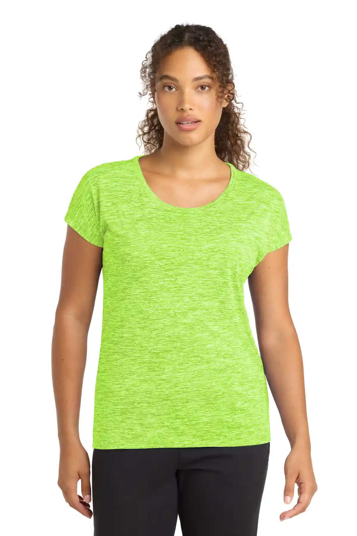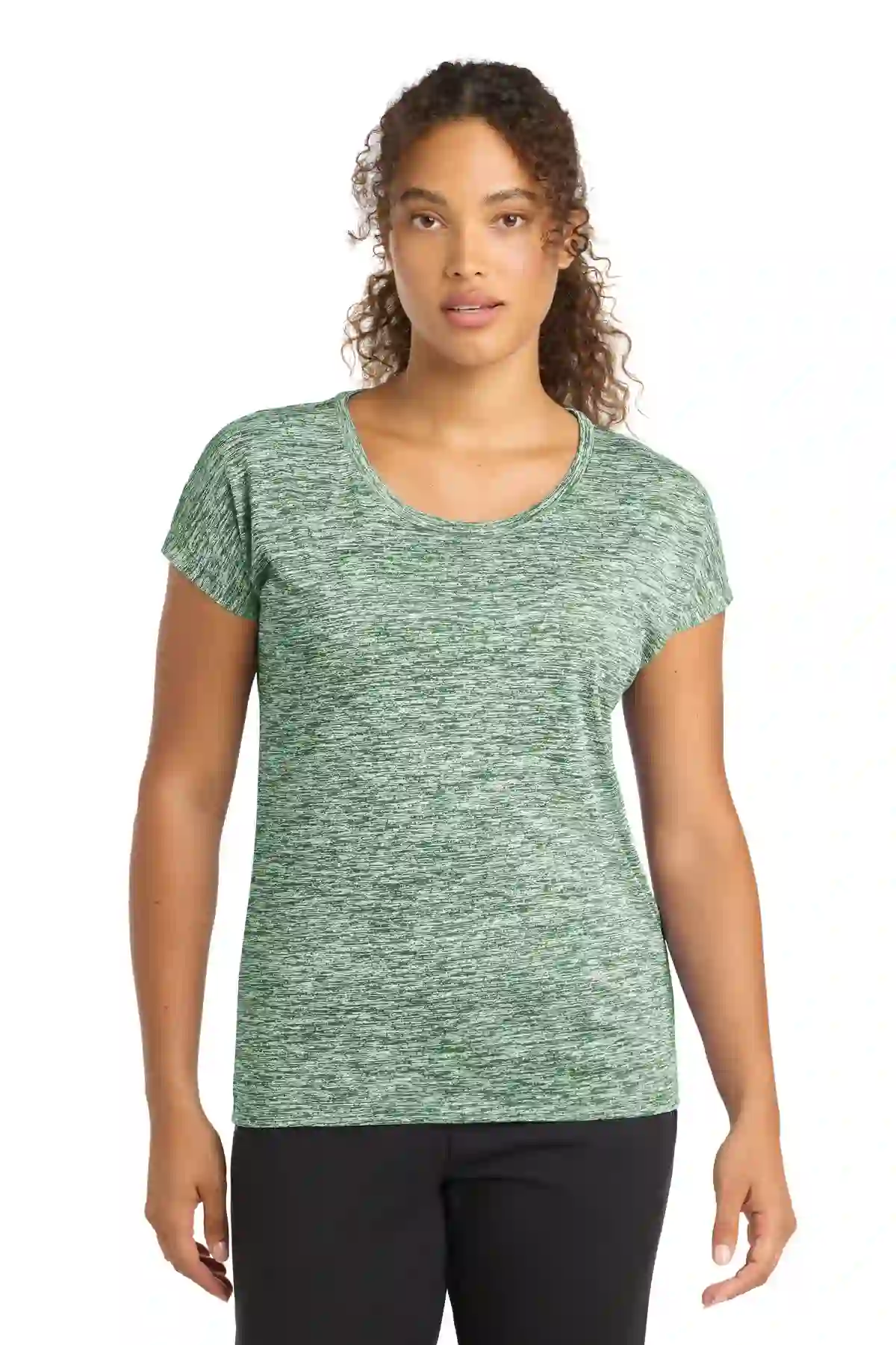This Electric Heather Sporty Tee delivers vibrant heather styling with high-performance moisture control. Soft polyester jersey construction ensures lightweight comfort. PosiCharge technology locks in color for long-term durability. Dolman sleeves create a relaxed silhouette and enhanced range of motion. Scoop neckline maintains a clean athletic profile. Designed for energetic training sessions and active lifestyles.