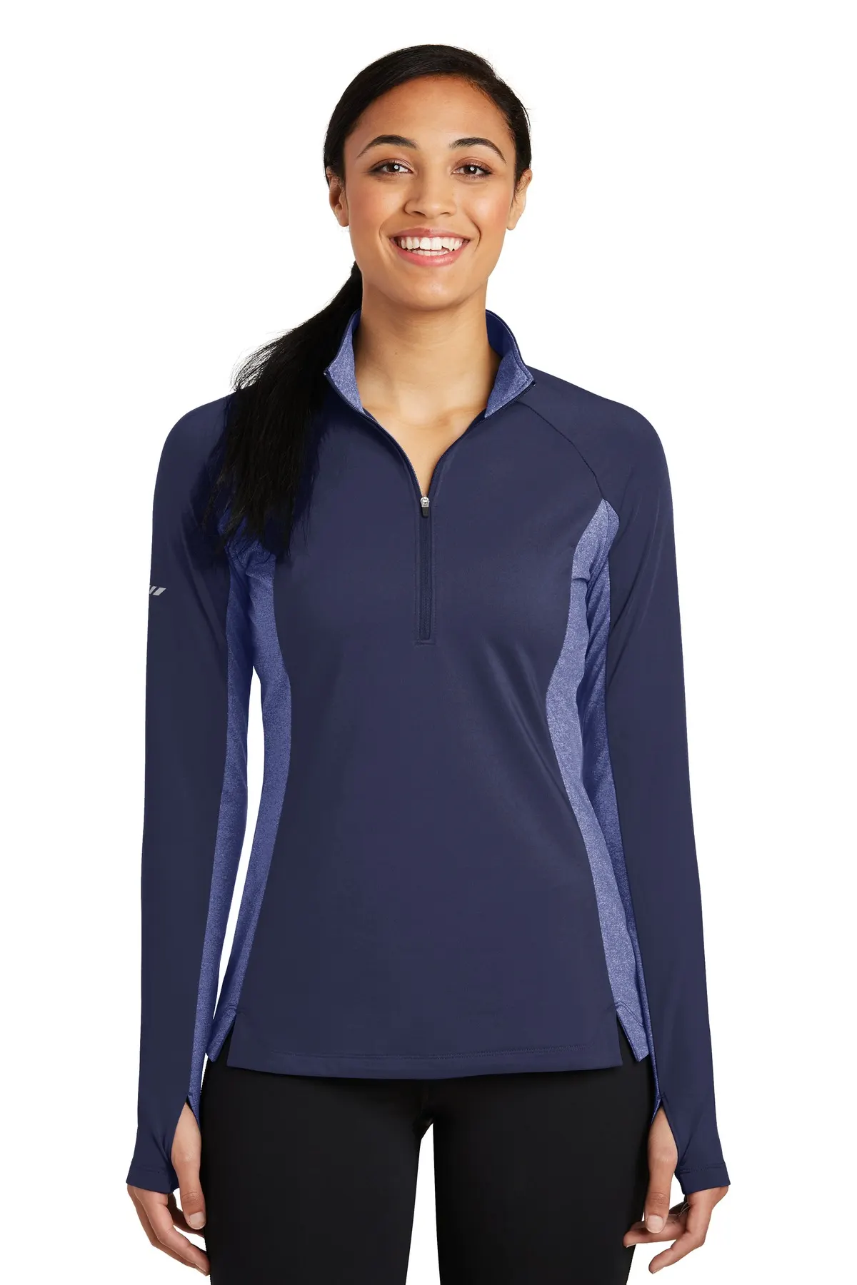 This 1/4-zip pullover merges technical performance with modern athletic styling. Crafted from stretch poly/spandex, it provides full mobility while effectively wicking moisture. Reflective details enhance visibility during low-light conditions. Princess seams and a curved back design create a flattering silhouette. The cadet collar and reverse coil zipper offer adjustable ventilation. Built for runners, trainers, and active professionals, it delivers reliable comfort and a refined appearance.